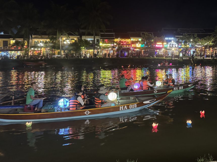 We headed south out of Hue for the 3-hour drive down famous Highway 1 to Hoi An.  Along the route is Dam Lang Co, a fishing village, where we stopped lakeside for a ‘Happy Room’ visit and refreshments.  A big hit was the coconut coffee – excellent! The drive followed the coast of the East…