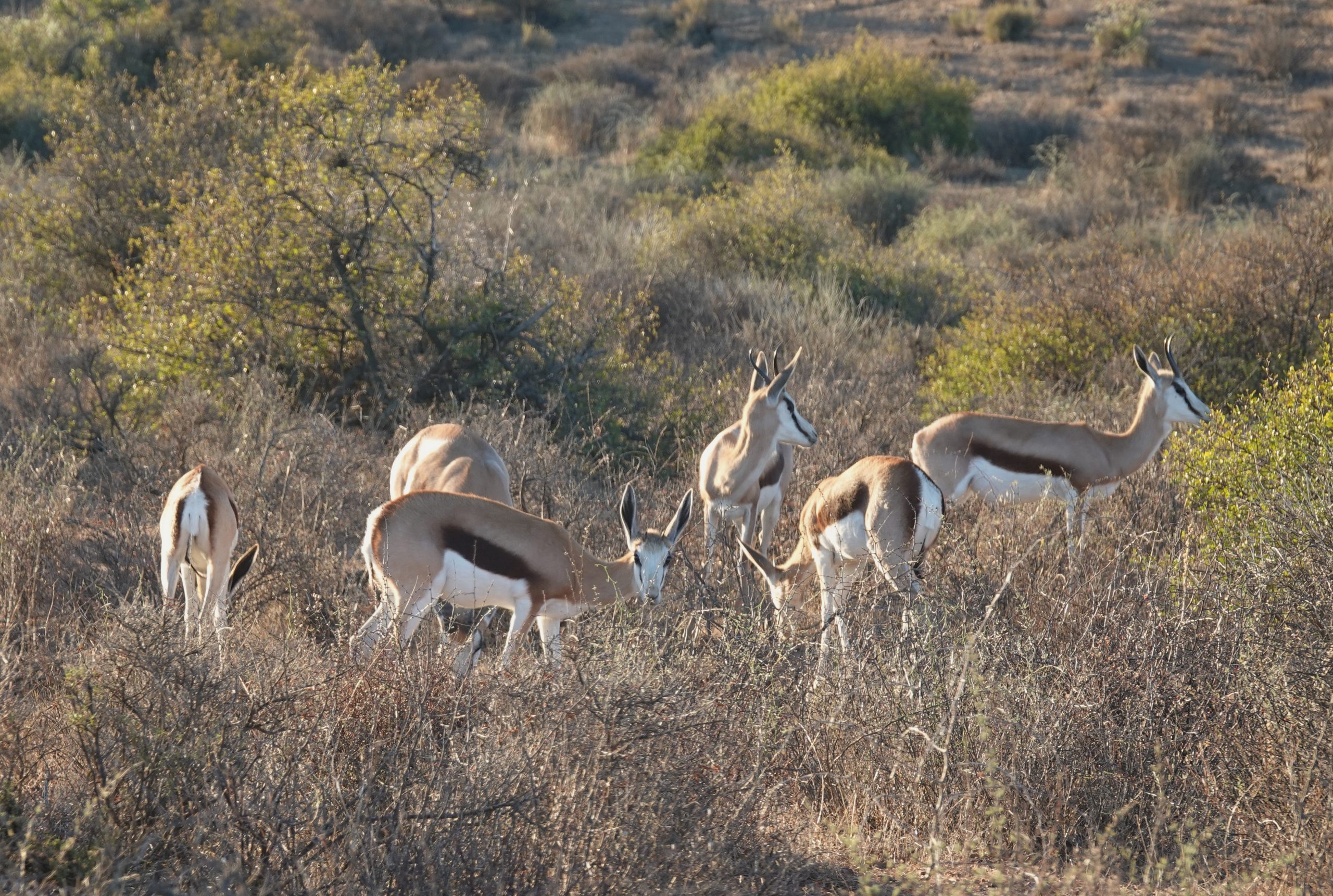 In the evening, we went on a game drive with Niel and stopped for the traditional ‘sundowner’ before heading back to camp’. Along the route were ostrich, red wildebeest, springbock, a large group of Cape Mountain Zebras, and baboon.