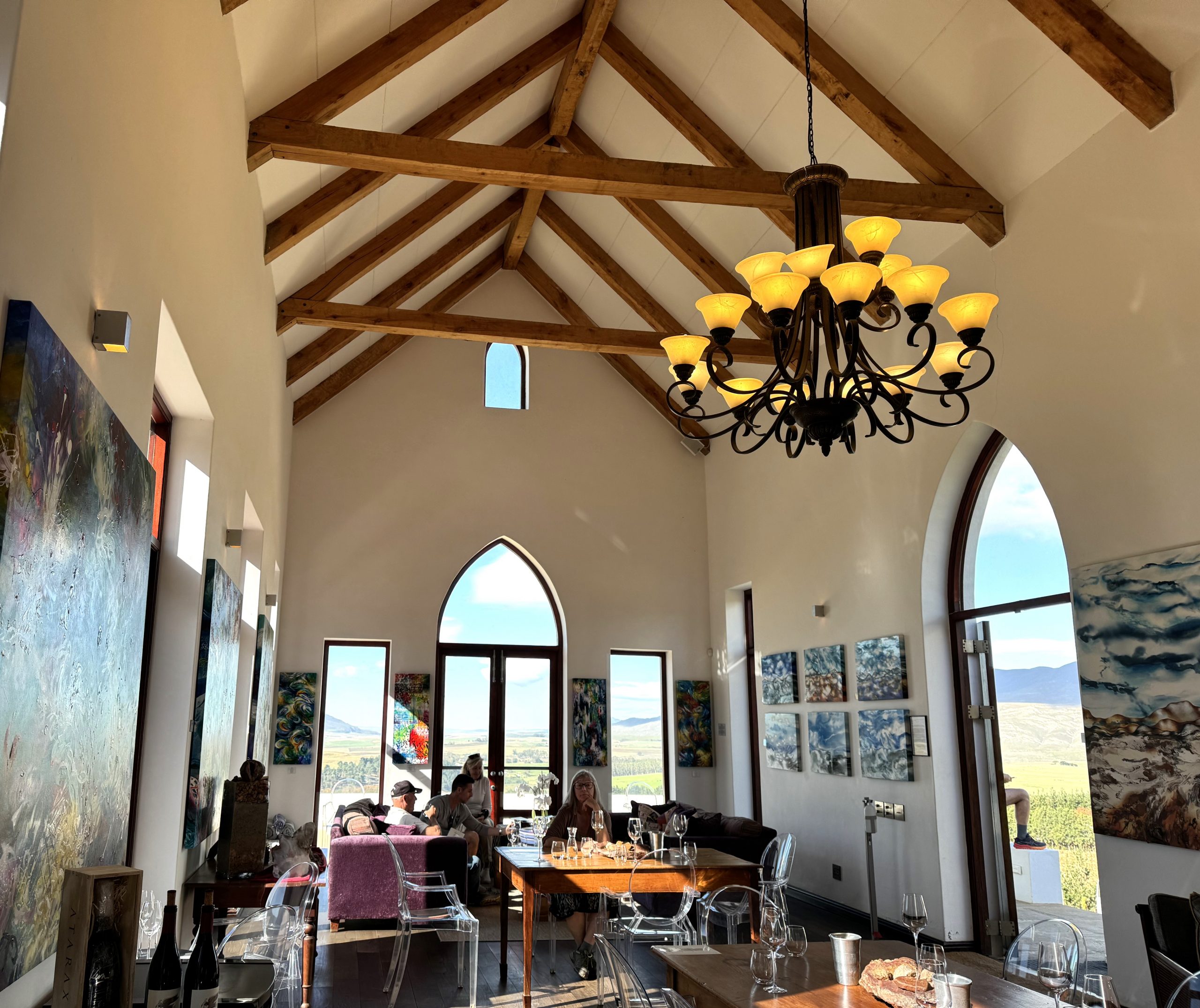 Further up along the Hemel-en-Aarde ridge in a striking setting is Ataraxia, a small winery that produces four wines; Sauvignon Blanc, Chardonnay, Pinot Noir and Serenity, a red blend. Their tasting room is unique as it is built as a chapel in the architectural style of the Overberg region. The wines live up to the hype.