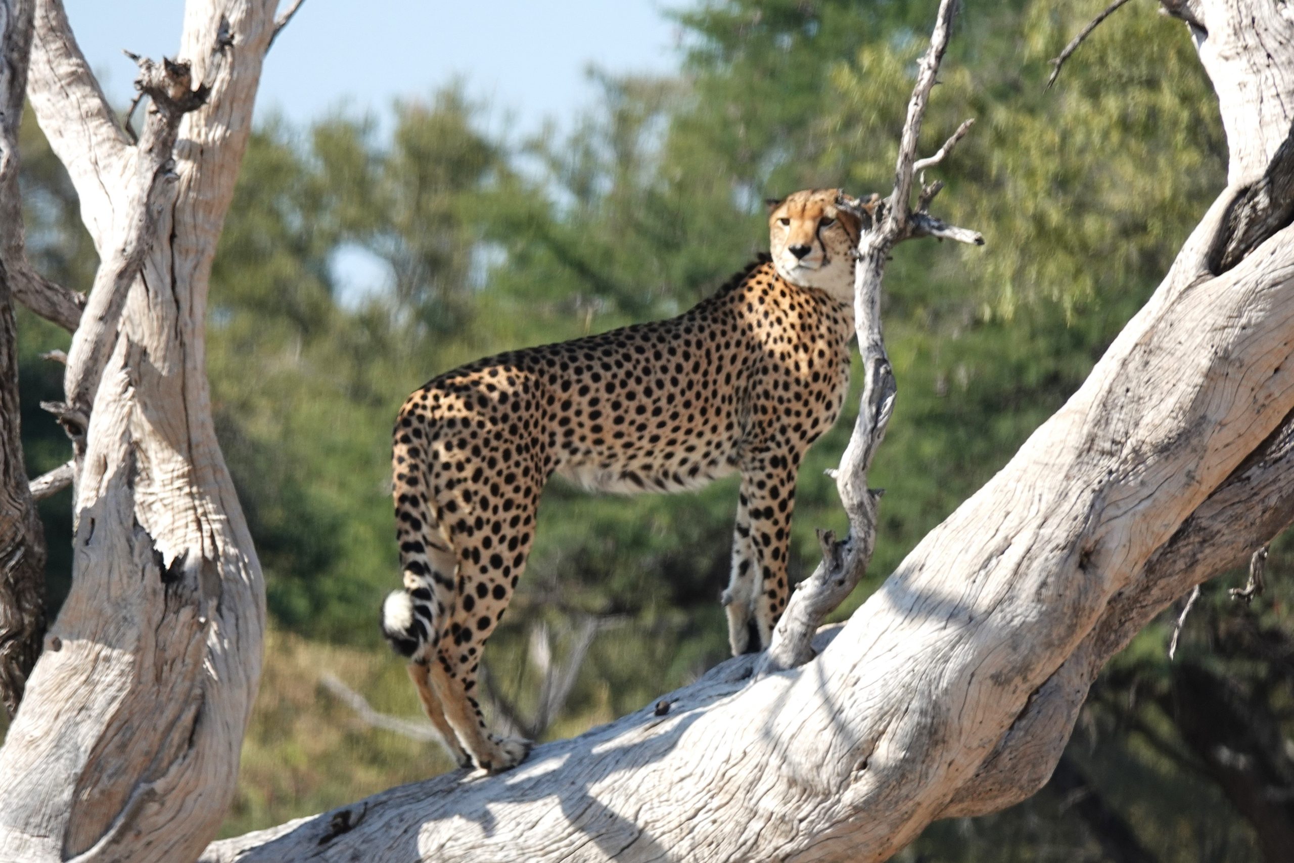 Livinstone wanted to make sure we had another look at the cheetah brothers and quickly located them perched on a tree looking for dinner and relaxing. They seemed to be fixated on a herd of wildebeest grazing at a nearby pan but didn’t make any moves towards the critters while we were there.