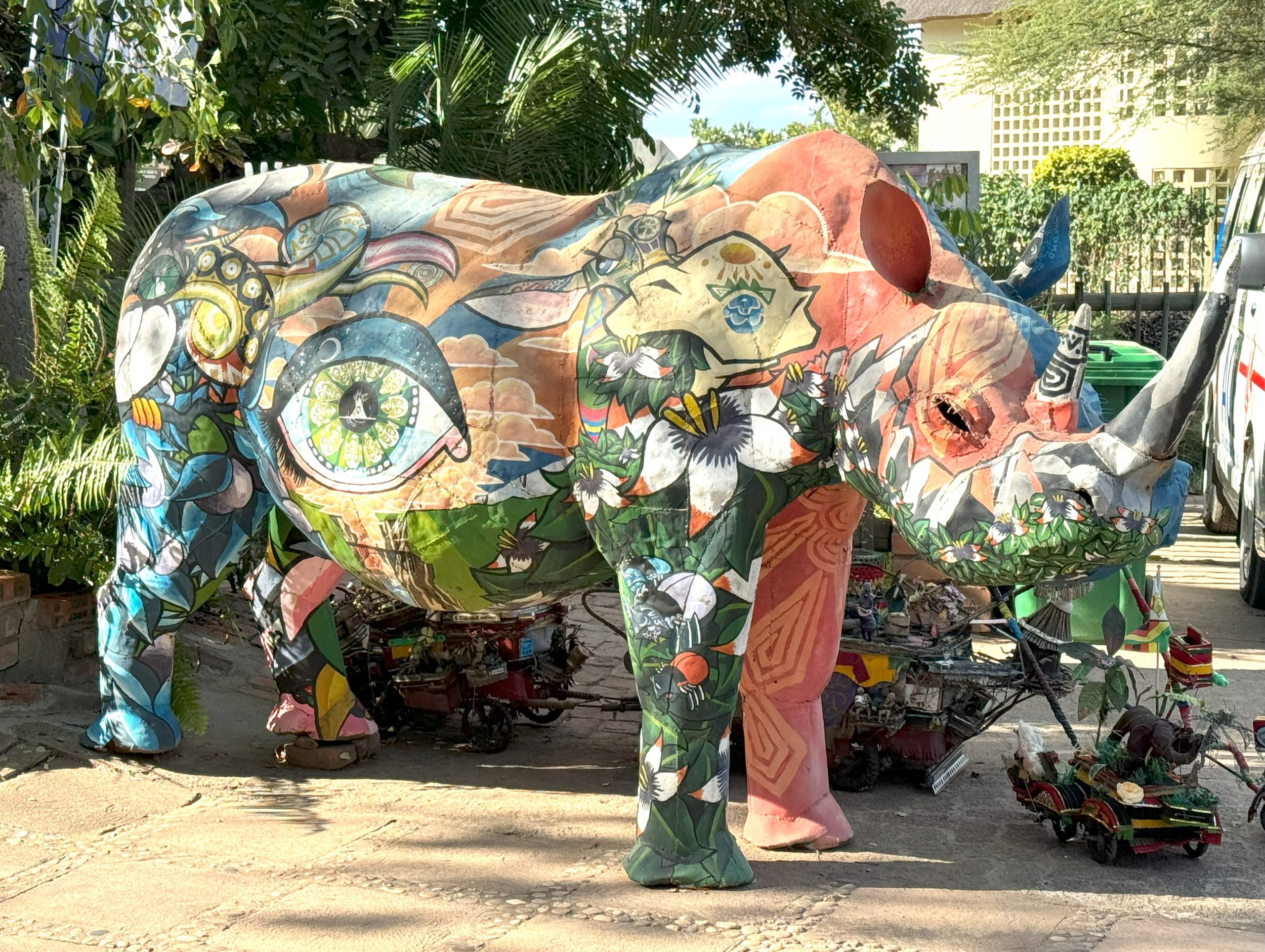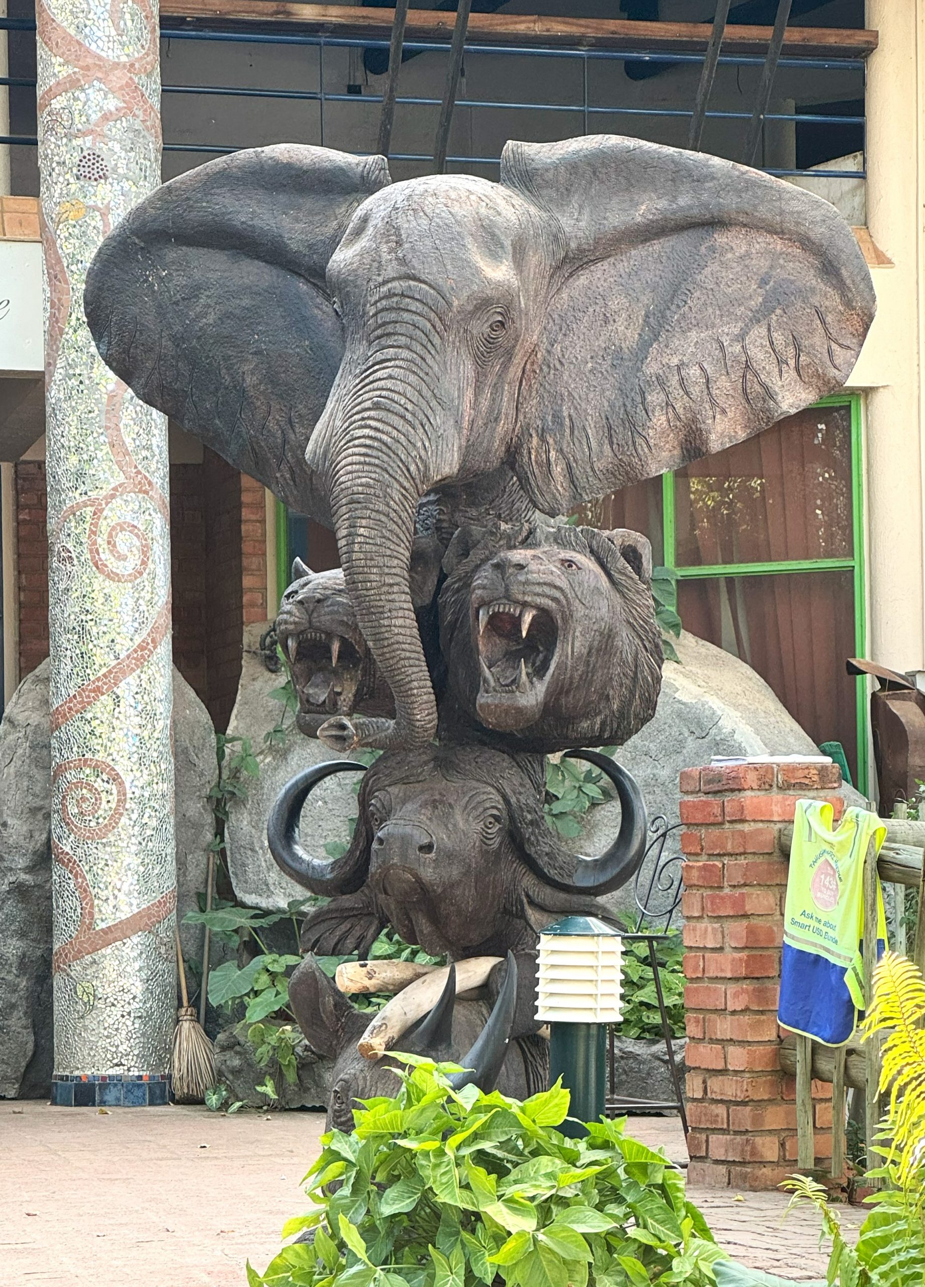 Our lodging was at the Palm River Hotel which is a short distance north of Victoria Falls city and right on the banks of the Zambezi River. We took a shuttle into town for snacks at the ‘River Brewery’ and drinks at the iconic Ilala Hotel. There was some cool street art in the tourist area.