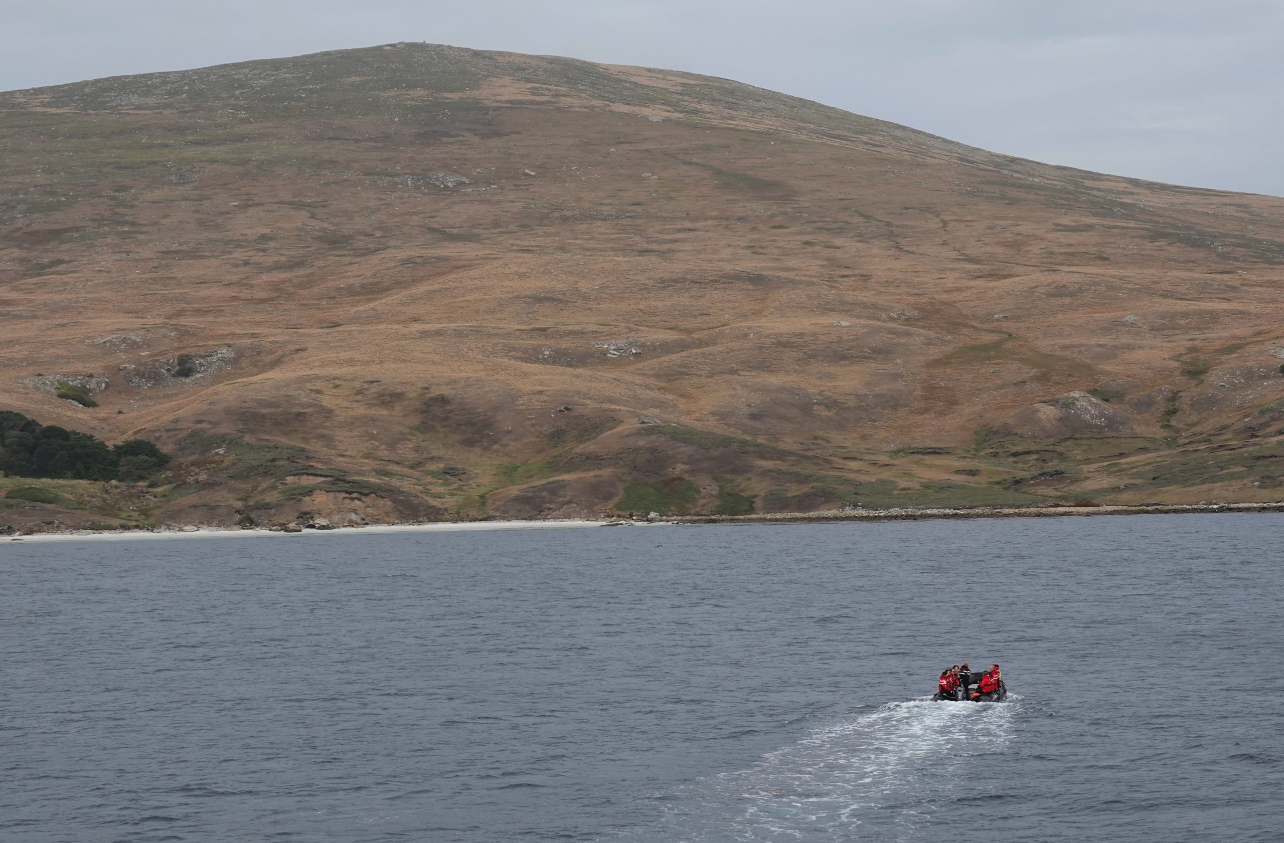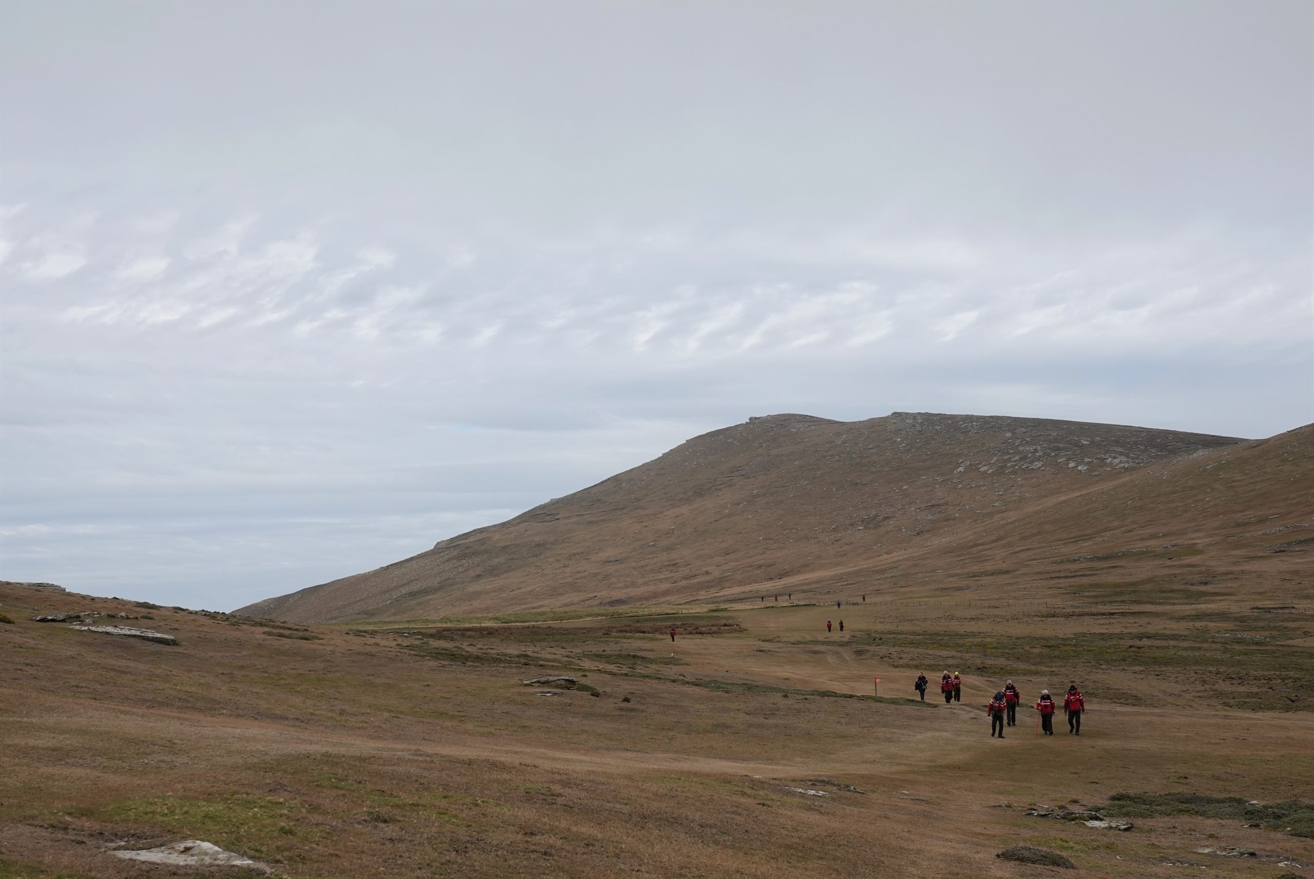 There is a large colony of Black-browed Albatross and Rockhopper Penguins that can be reached after a short hike. The walk to the breeding grounds was only a 1.5-mile hike but is uphill and through some rough terrain. The landscape is interesting with native and introduced grasses – it looks much like the Orkneys. There are no trees at all on any of the Falklands.