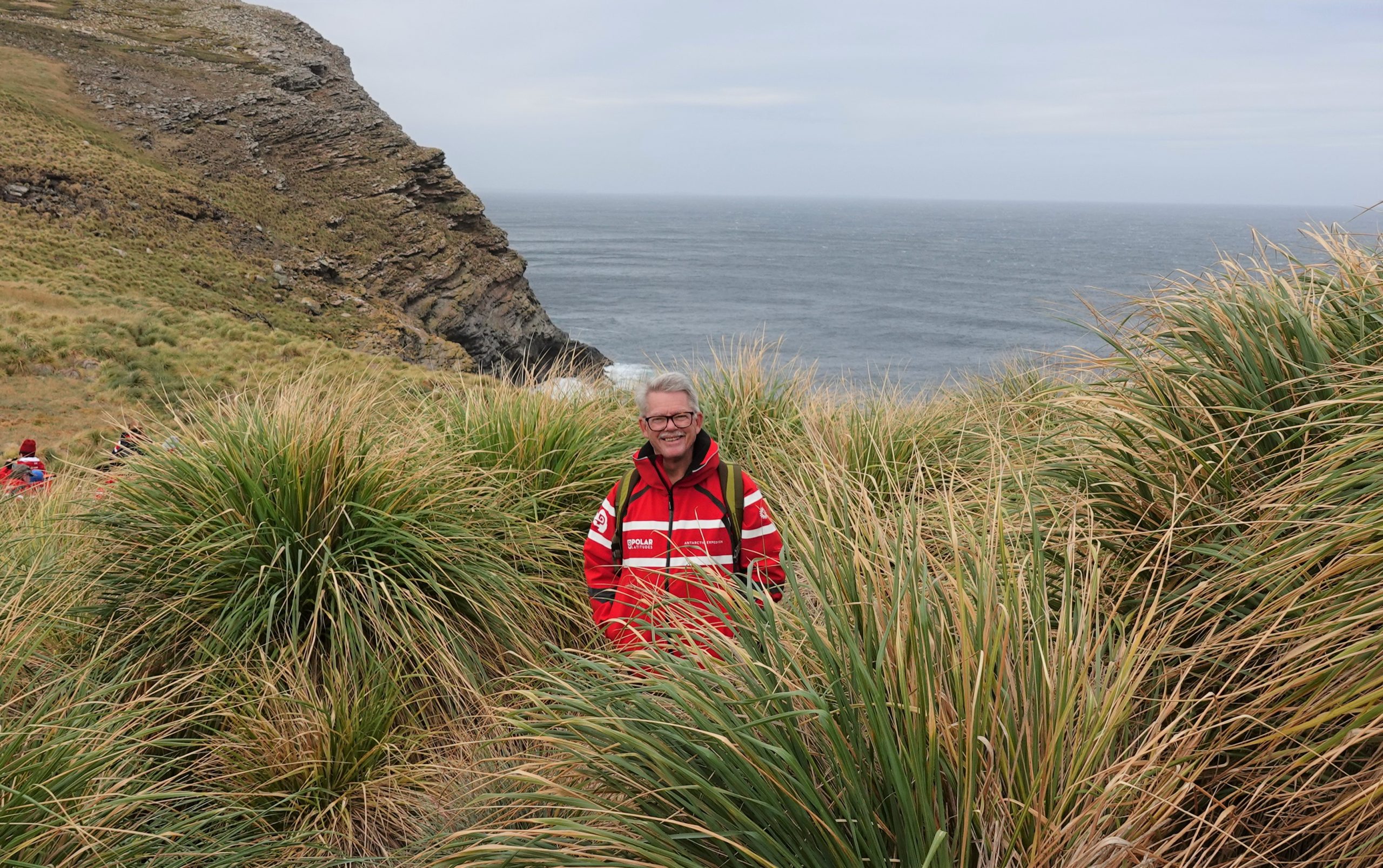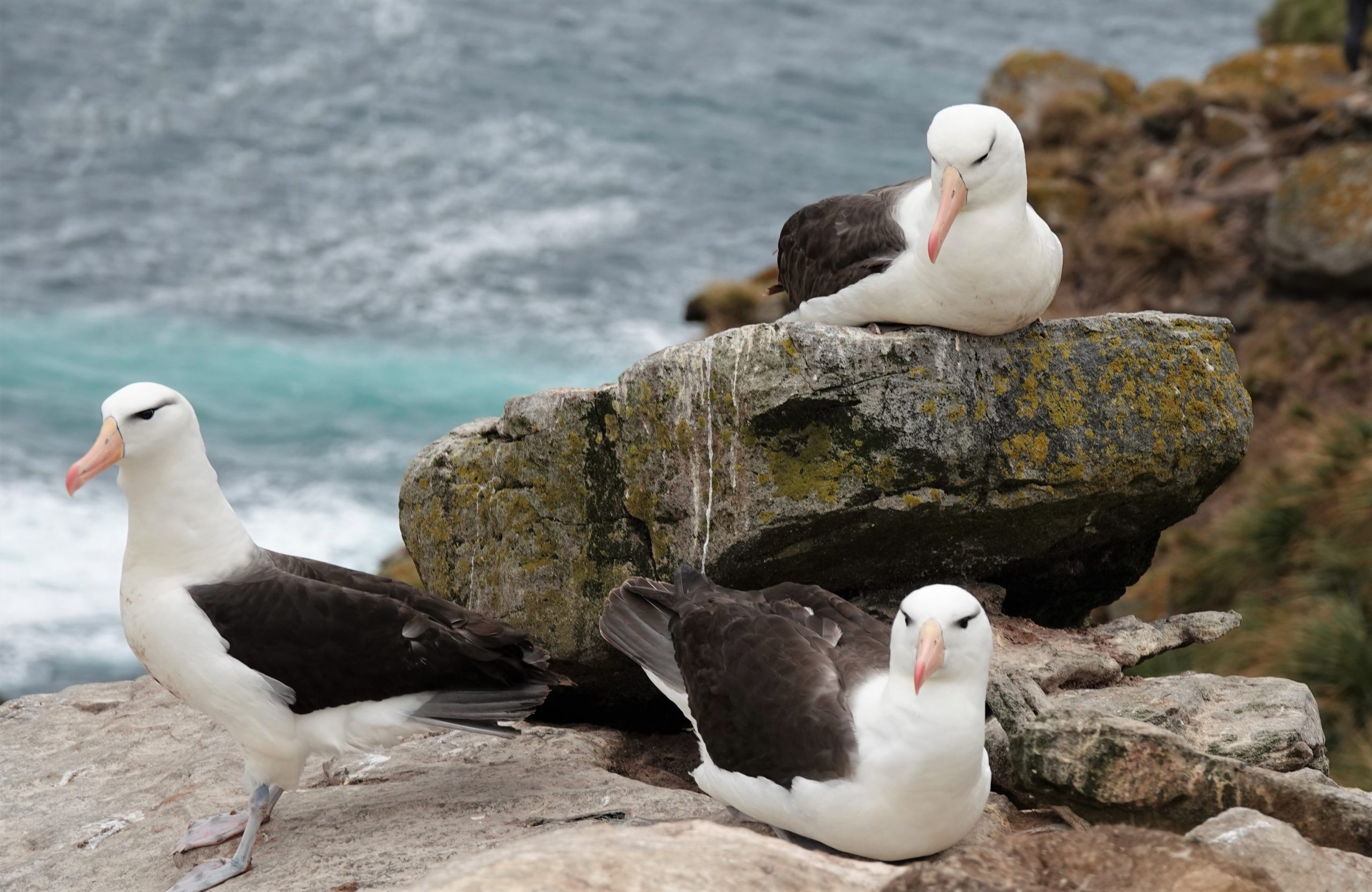 The albatross rookery is in an area of tall Tussock grass and there are very narrow twisting paths to walk through otherwise it is impassable. Excellent shelter for the nesting birds. The Black-browed Albatross mate for life and return to the same rookery every year and sometimes even the same nest. The chicks are now molting and will be going to sea soon. Many of their parents have already left.