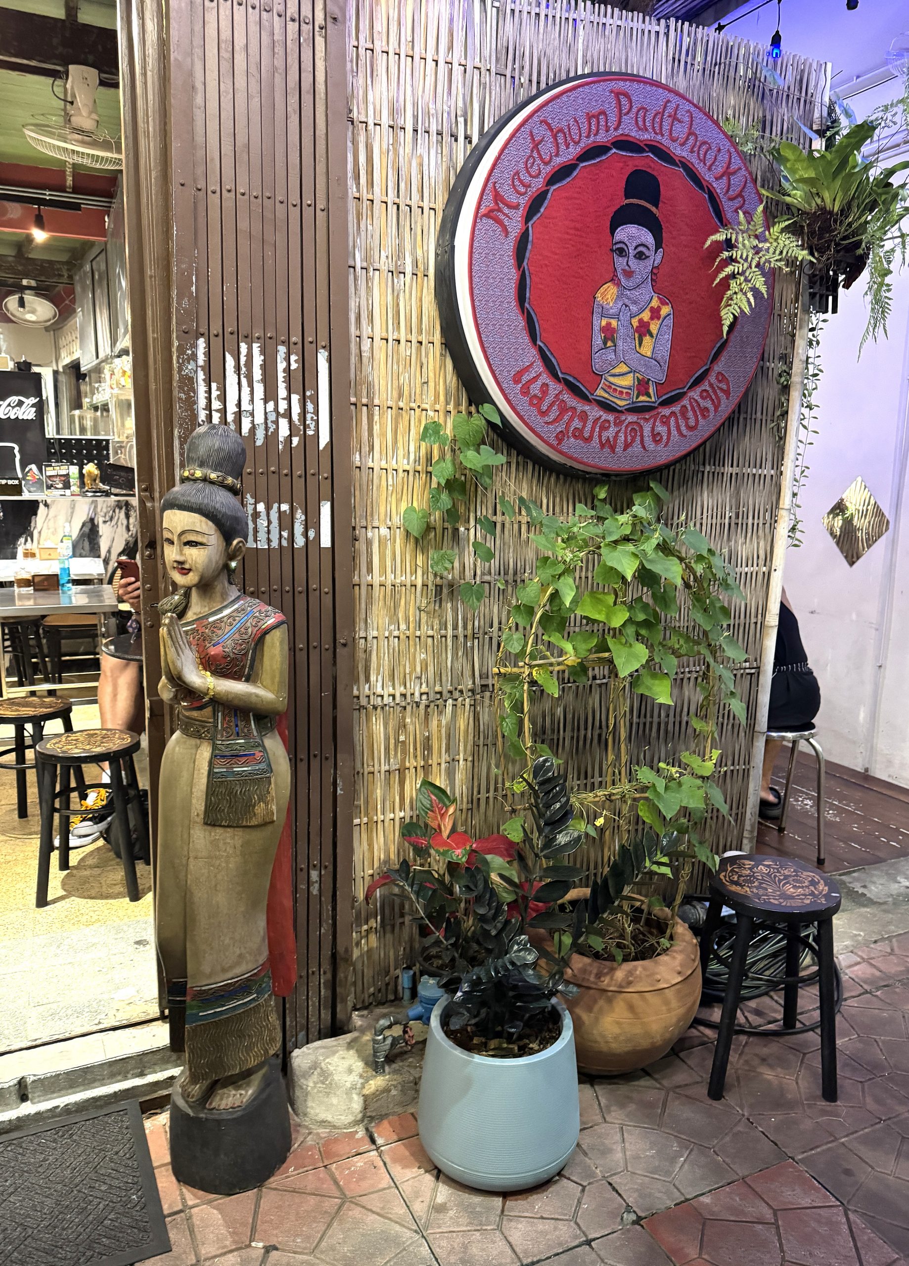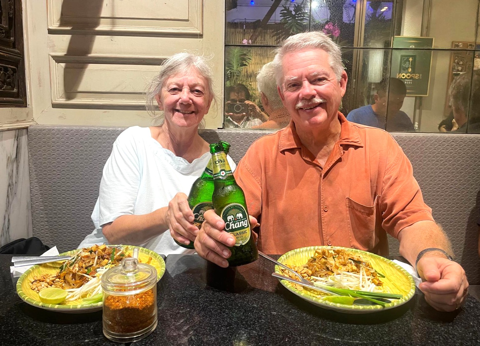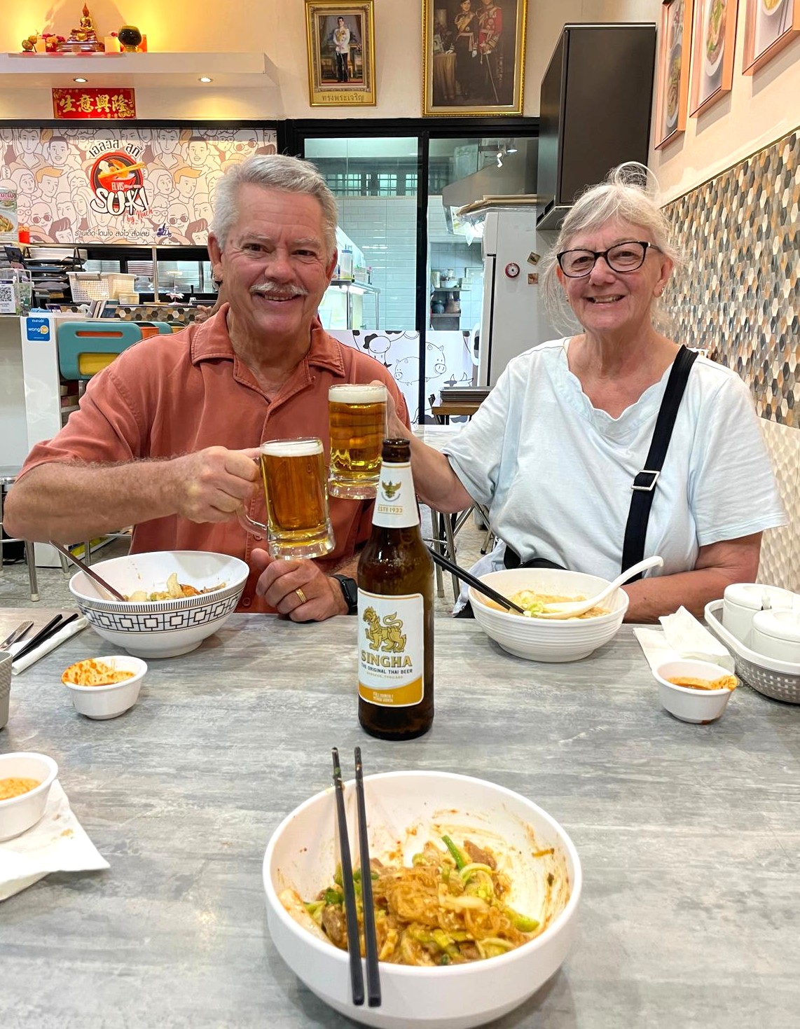 Our next dining stop was at ‘MaeThum Pad Thai’ in the heart of a bustling street food market. MaeThum is another award winning restaurant. The dining experience is cozy and welcoming. We both had Pad Thai – chicken for me, Vegie for Mary. The chef who had run restaurants in the States for some 15 years stopped by our table to greet us. Very cool.