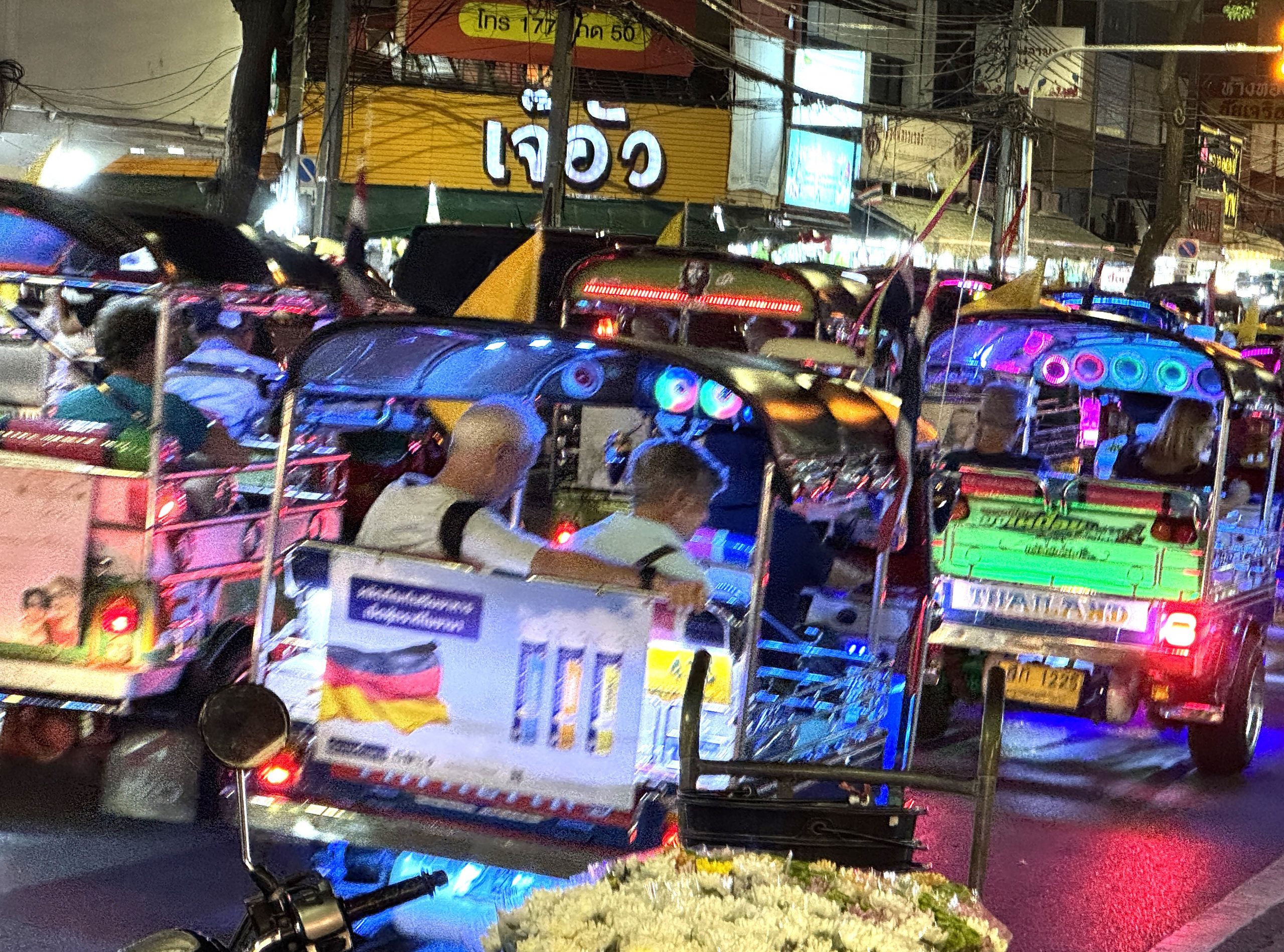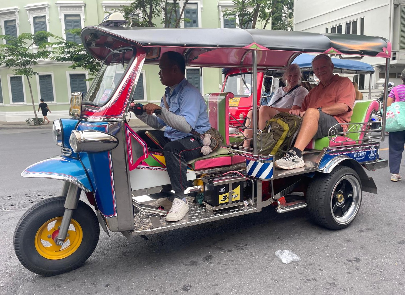 Mr. Ed met us late afternoon for a ‘Twilight Foodie Tour’ by tuk tuk. We started off by taking the short walk from the hotel to the canal where we boarded a narrow boat to get us into the center of Old Town Bangkok and a hookup with our tuk tuk driver.