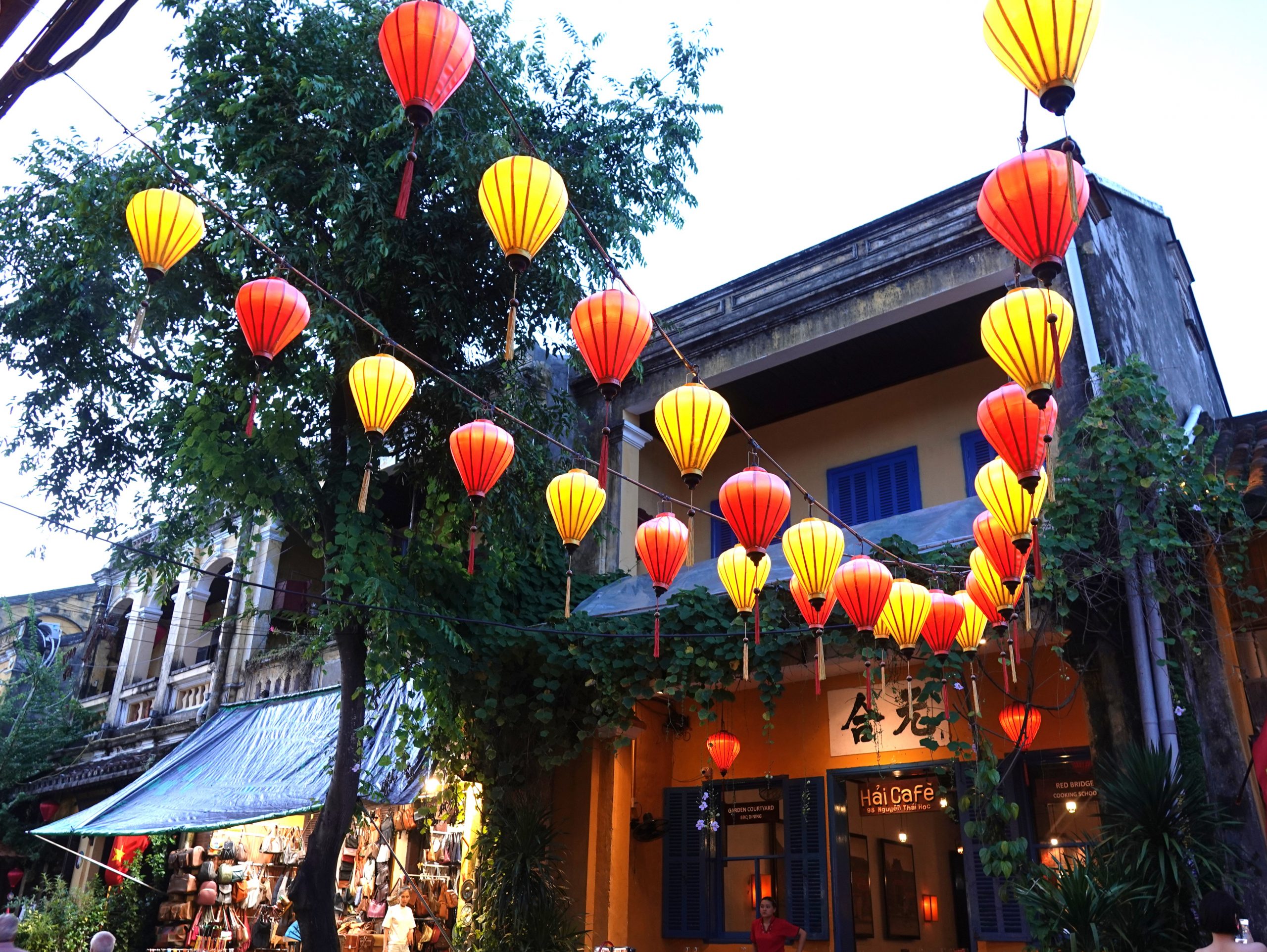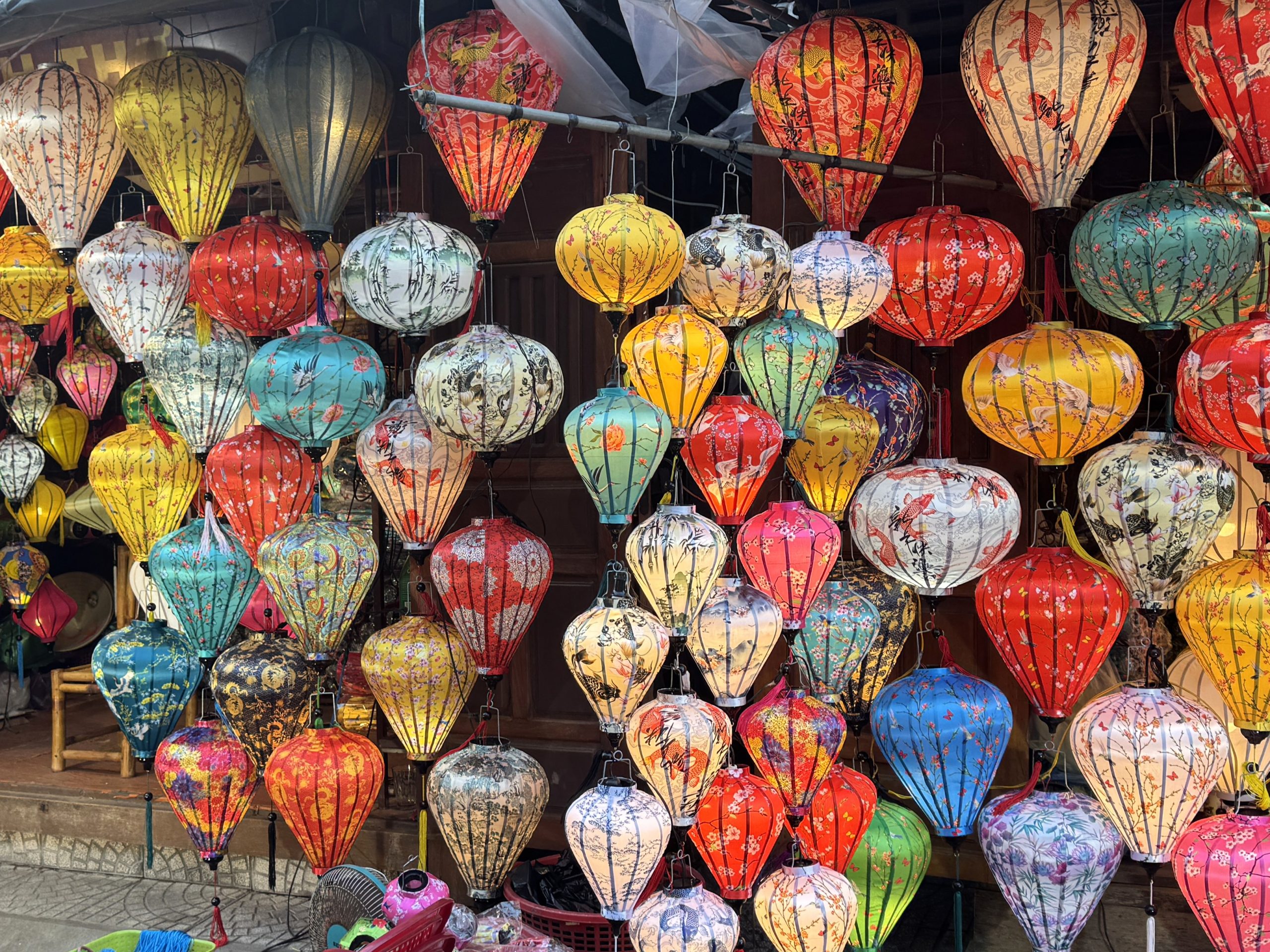 Once back in Hoi An we walked back into the city’s Old Town. The tailors had finished our custom-made clothing. I liked my shirts so much I asked that a few more be made. There are some interesting shops in town and a good-sized street market. Mary scored a cool t-shirt and I picked up some vintage propaganda posters. The town is beautiful with small boats on the river and lanterns everywhere.