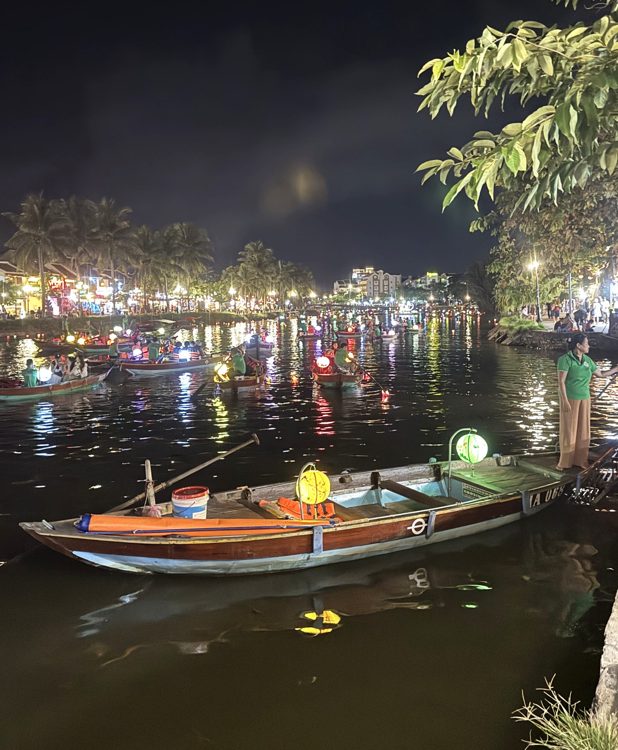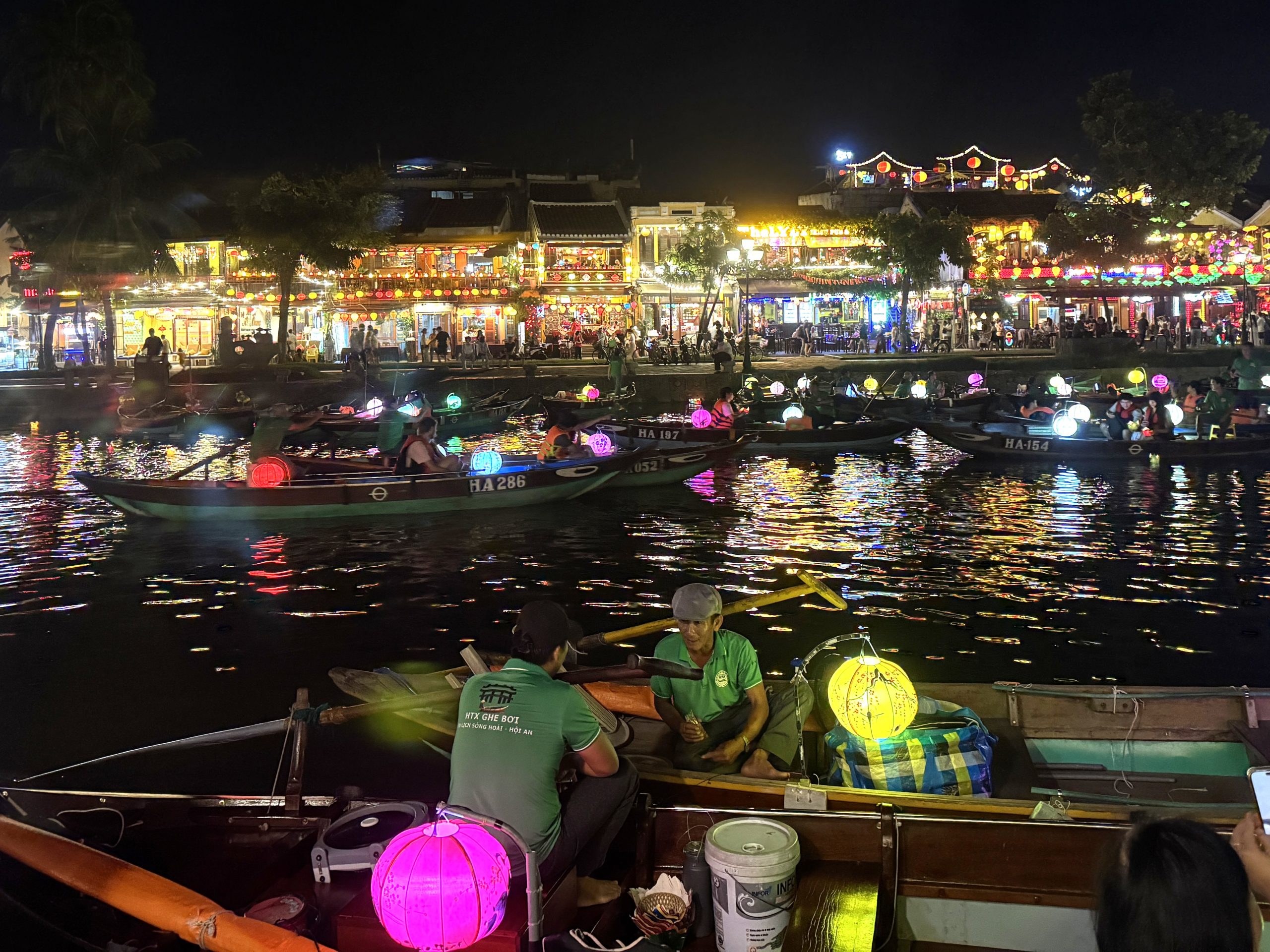 The crowds really picked up after nightfall. A popular activity is to rent time on one of the many sampans which ply the river and to release floating lanterns into the water. It’s quite the spectacle to watch. After dinner at the Morning Glory restaurant, we headed back to the hotel for an early evening.