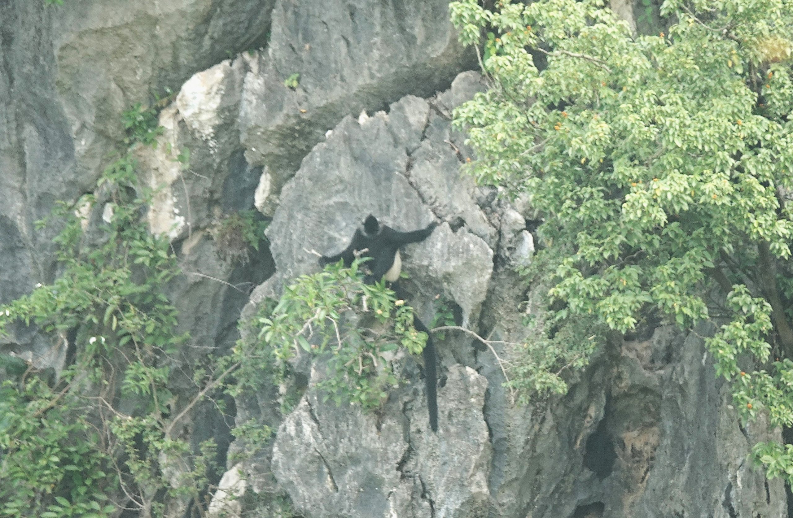 Rowers at this preserve are local villagers and clients are assigned on a rotation basis. We ended up with a good one. She didn’t speak any English but spotted and pointed out a family of langurs on a cliff side along with many of the local birds. The boat trip was very tranquil, winding along a river in the preserve with great views of the karsts and lily ponds.