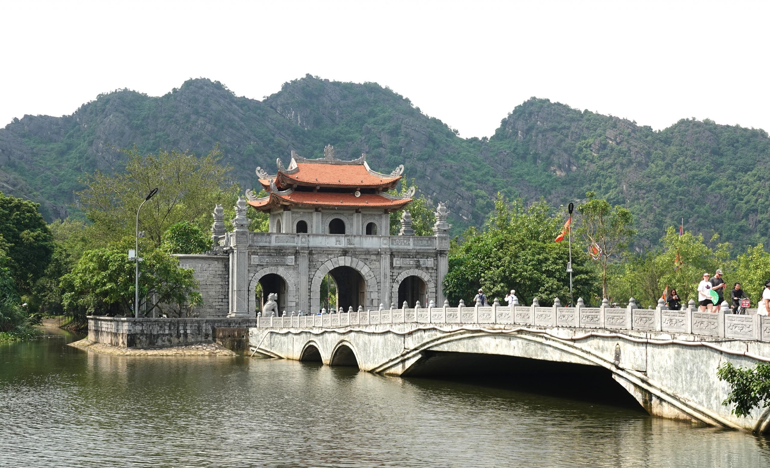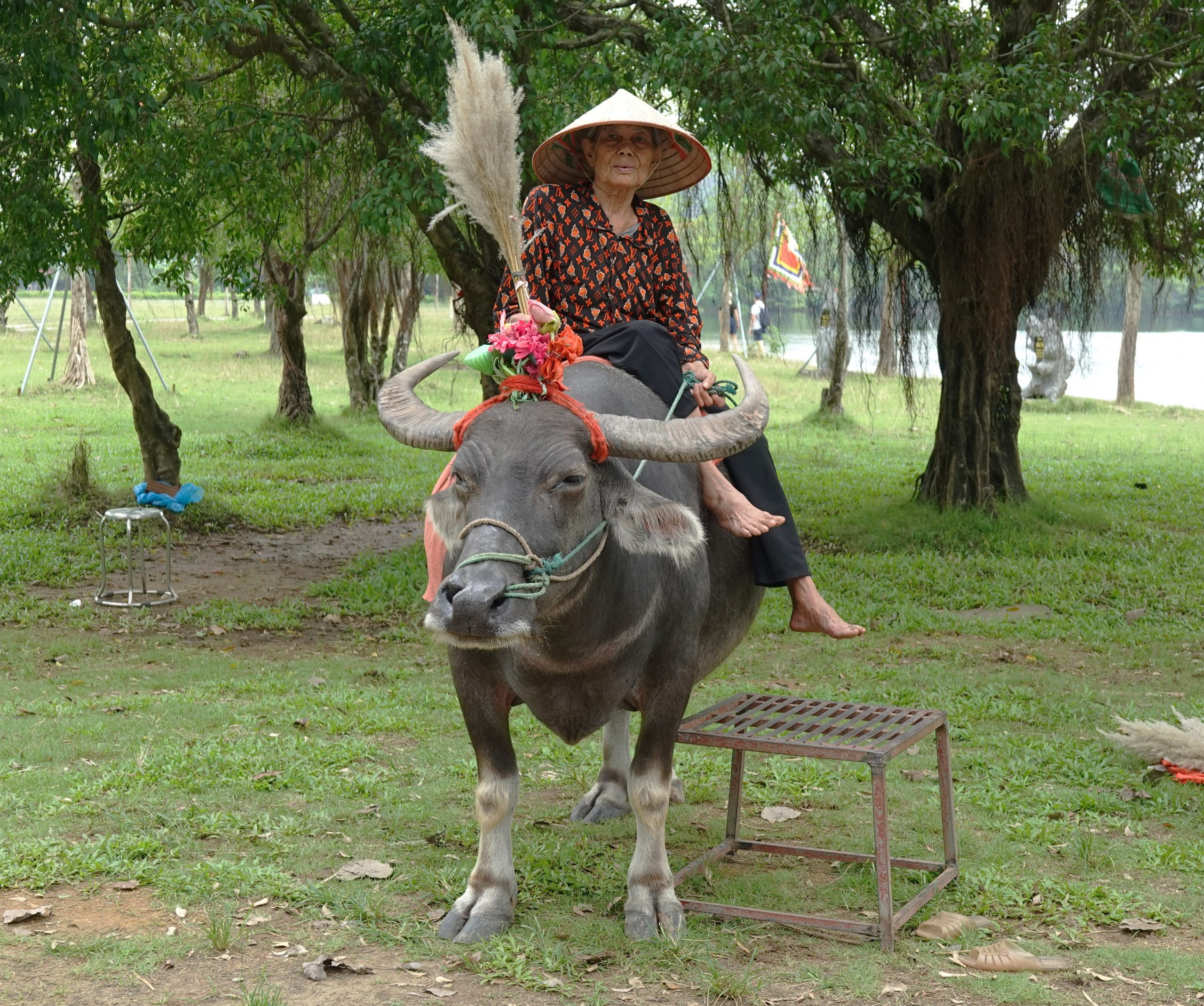 Bob and Phuong picked us up early for a trip to ‘Hoa Lu’, Vietnam’s ancient and original capital and one of Ninh Binh’s main tourist attractions. It was already busy when we arrived and the tourists trappings were everywhere. Kids selling who knows what, photographers with ‘special shots’, candies, … We fell for the ‘old woman on a water buffalo trick’ (a few dong got us a pic)! All in all though, Hoa Lu was an interesting place with a number of historic 17th century pagodas and tombs.