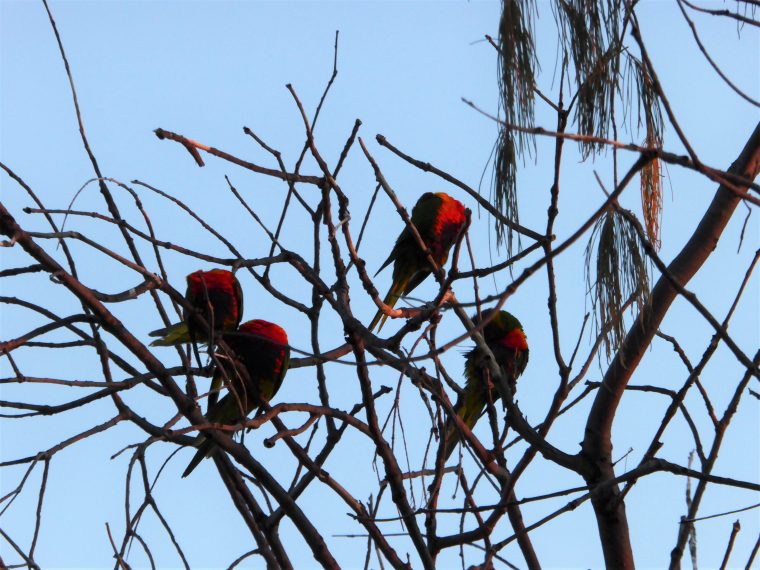 How fun! The parakeets and lorakeets are so beautiful and amazingly loud. If you have the opportunity to be out in the night away from town to hear the wildlife. A bit unnerving to not know what animal is making the strange sounds.