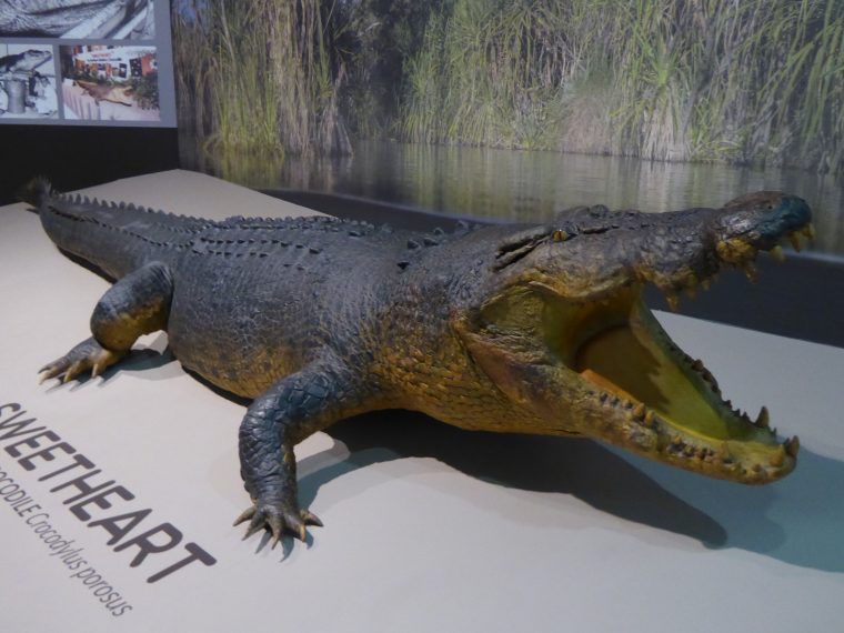 We move onto the Museum of Art of the Northern Territories. They have an extensive display of Aboriginal paintings and an impressive exhibit of Cyclone Tracy. Cyclone Tracy struck Darwin on Christmas morning in 1974 and essentially leveled the city. On a lighter note, they also have the stuffed remains of the legendary crocodile, known as “Sweetheart”.