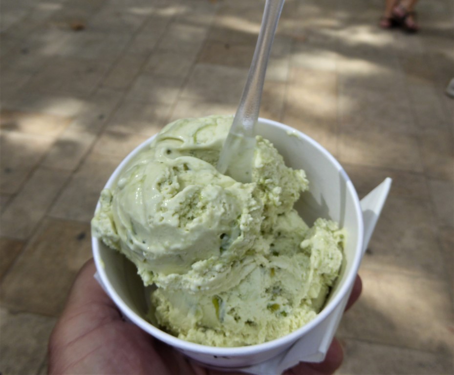 First, however, we must go to the market. Saturdays have a special vibe and some of the street vendors are different. We need to get some more fruit, reload on the olives and check out the Paella guy again. We have also been eyeing up the glacier vendor as well and today we decide to sample his wares. The Pistache ice cream was great.