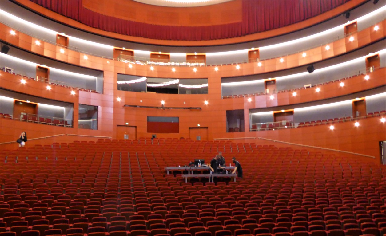 Besides the thrice weekly market, today the Grand Theatre De Provence is having an open house for the public. They are offering back-stage tours of the theatre at 10:00, 12:00 and 14:00. We have been looking at this building from our balcony since we have been here, and it is quite intriguing from the outside, so a definite on our list today.