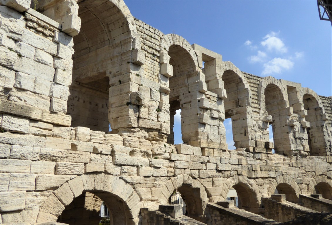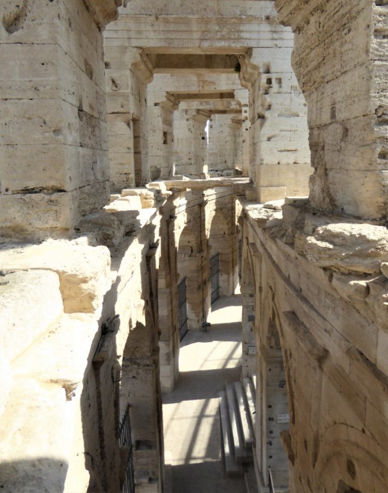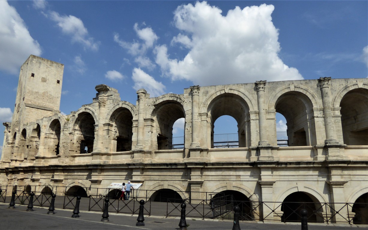 So today, we are going to the town of Arles to see the ancient Roman Amphitheater. Built in the early 1st century, the amphitheater is still in use today mainly for bulls fights several times a week. Of note, the bulls here do not get killed like those in Spain. The site holds 20,000 people, by way of comparison, the Coliseum in Rome held 50,000 in its heyday.