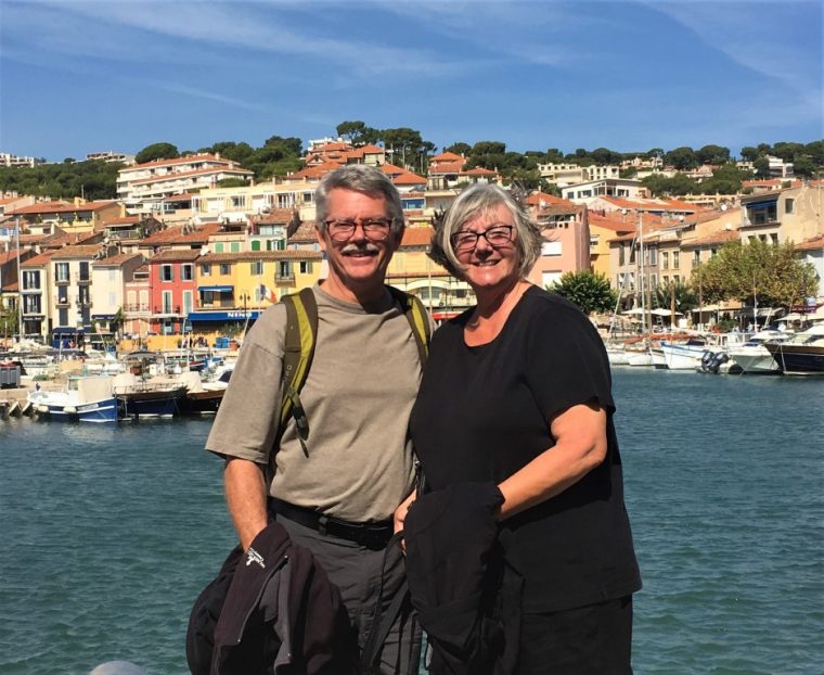 We have several hours to explore the town of Cassis. As Dick and I had been here several weeks ago, we choose to spend our time having lunch in the harbor. It’s a nice lunch, but way too much food. Later we take a small walk and dip our toes into the Mediterranean Sea, a first for both of us.