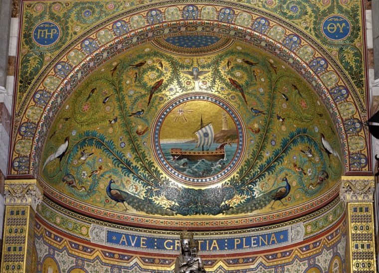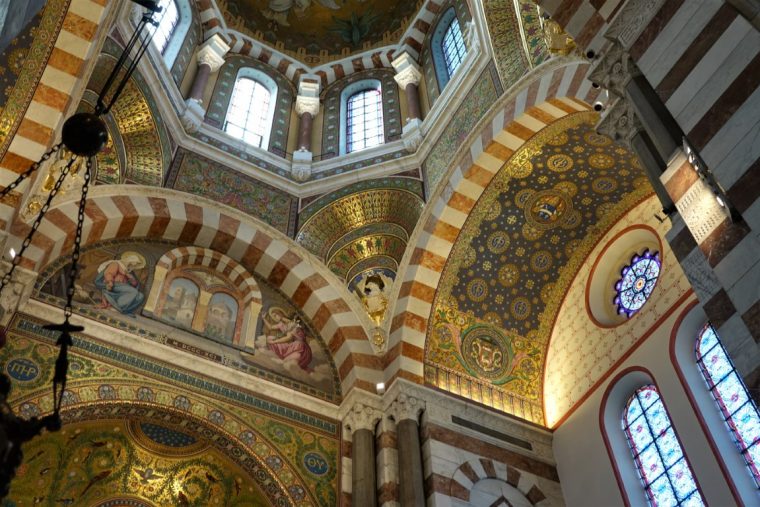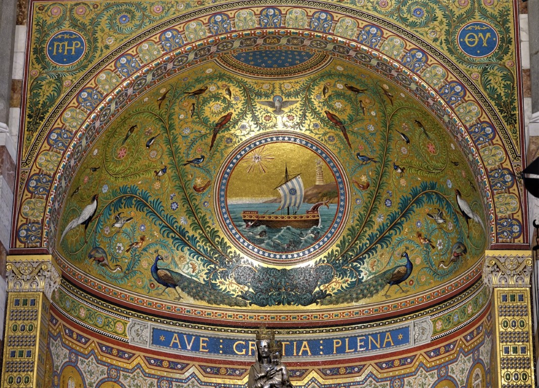 The drive into Marseille is interesting as neither Mary or I realized the size of the city – it’s France’s 2nd largest city! Massive. The historic city center looks very cool as we drive up to the basilica and the church itself is gorgeous. It overlooks the entire city and coast and is just incredible with it’s siting. Signs warning of pickpockets somewhat dull the experience. The ‘mistral’ winds have started and it’s amazing how strong they are up where we are in the basilica.