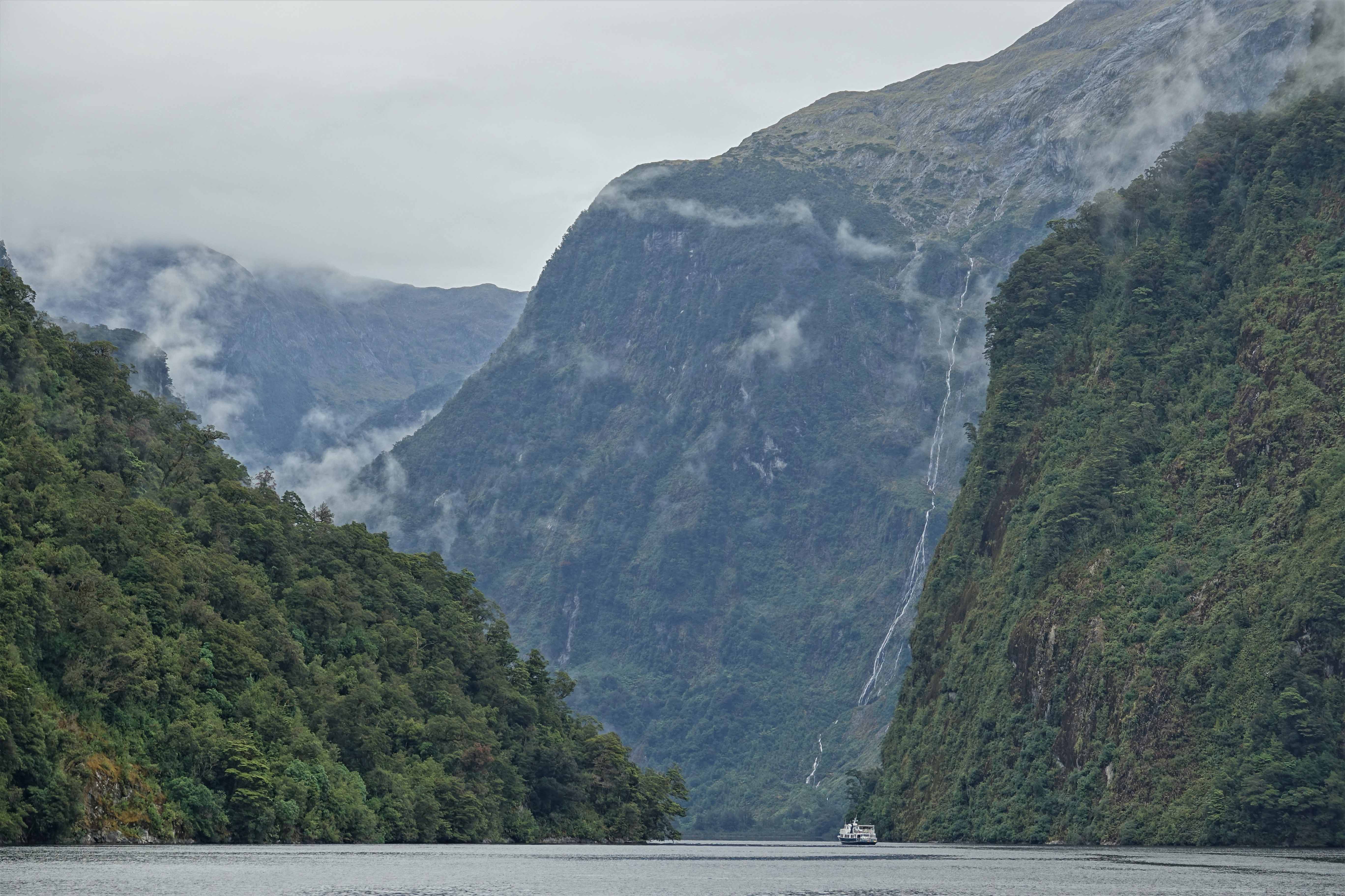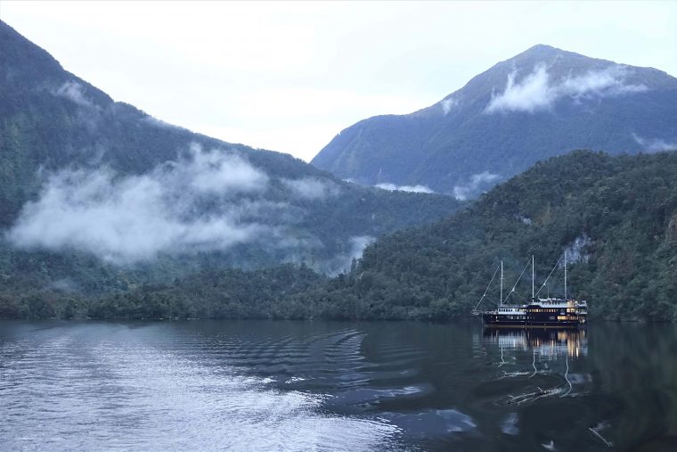 Unfortunately, yesterdays’ good weather isn’t holding. It’s overcast and a little cool when we rise. The Sound is still beautiful. It’s about a 3-hour cruise back to Deep Cove where the ship will dock. Along the way we were lucky enough to spot a rare (and very shy) Fiordland Crested Penguin on Shelter Island.