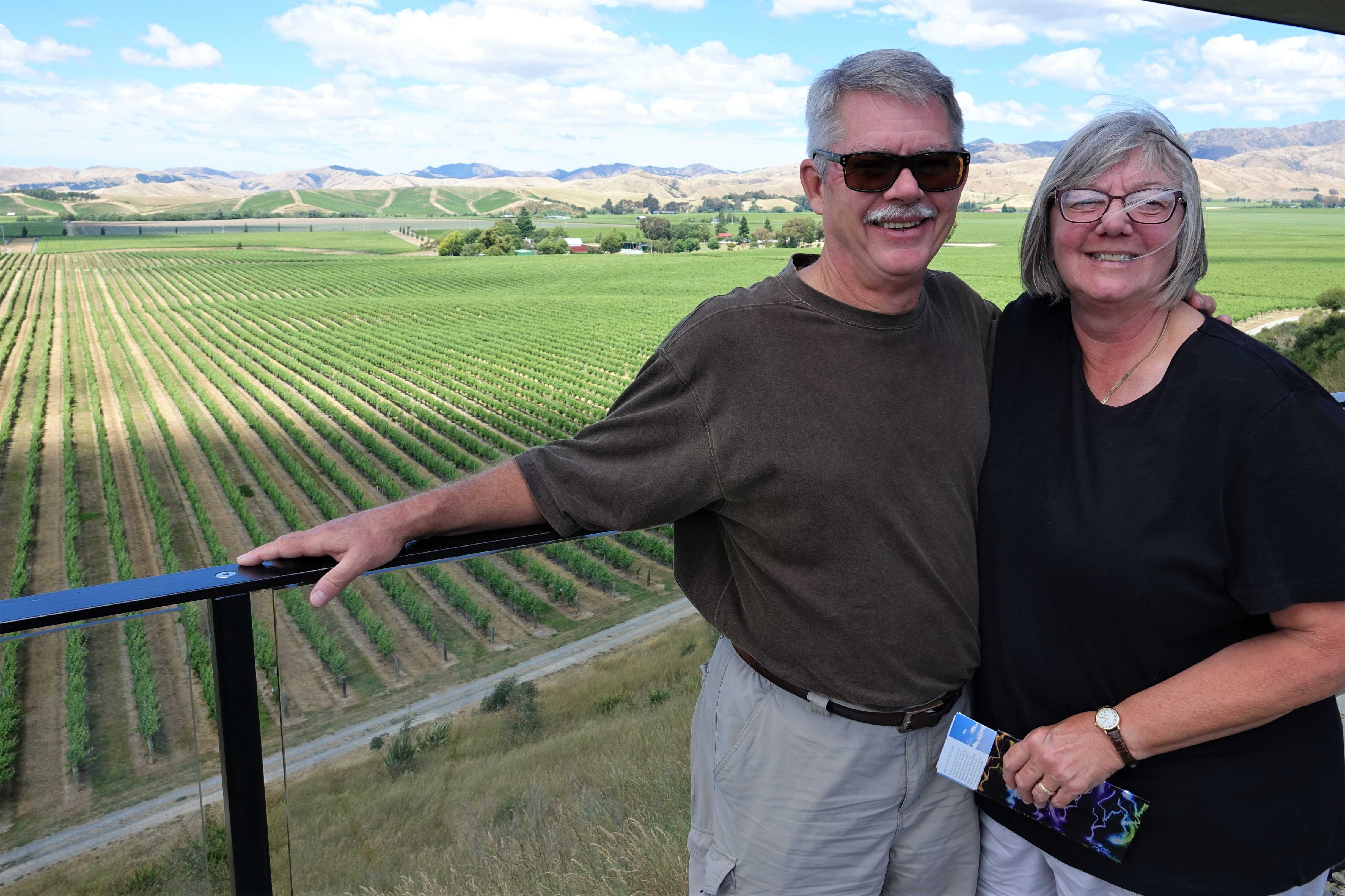 We have a pleasant tour of both boutique and medium sized wineries. Lunch is at Brancott, the largest winery in Marlborough; Dick has a Fillet and I had a Mushroom Risotto. Our table has an awesome view over their vineyards with mountains in the background. We finish with bubbly at No. 1 Family Estate and a tasting at Whitehaven. Somehow, Kerry has produced a slice of carrot cake with a candle and the cellar staff sing a rousing rendition of Happy Birthday, paired well with the pinot noir.