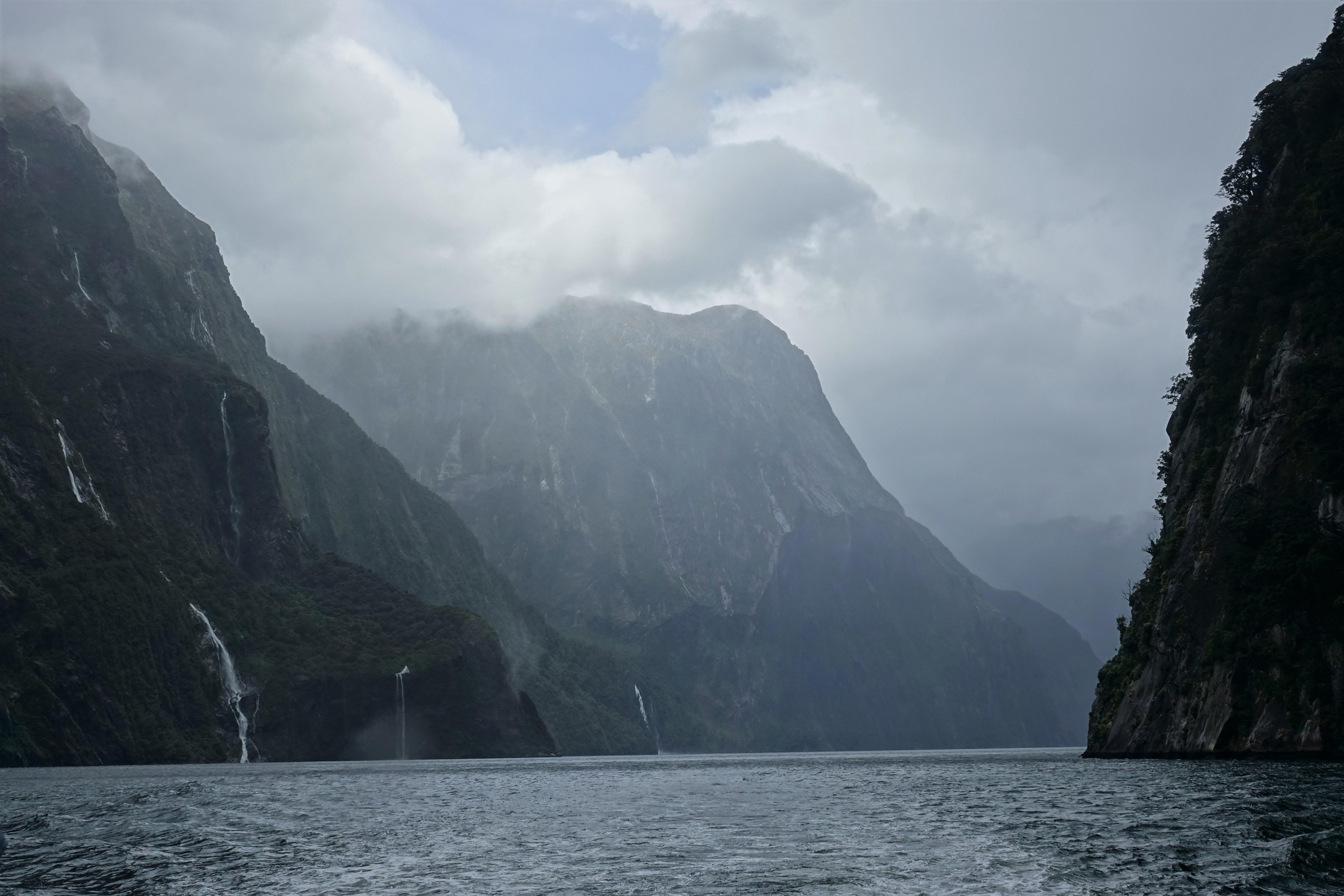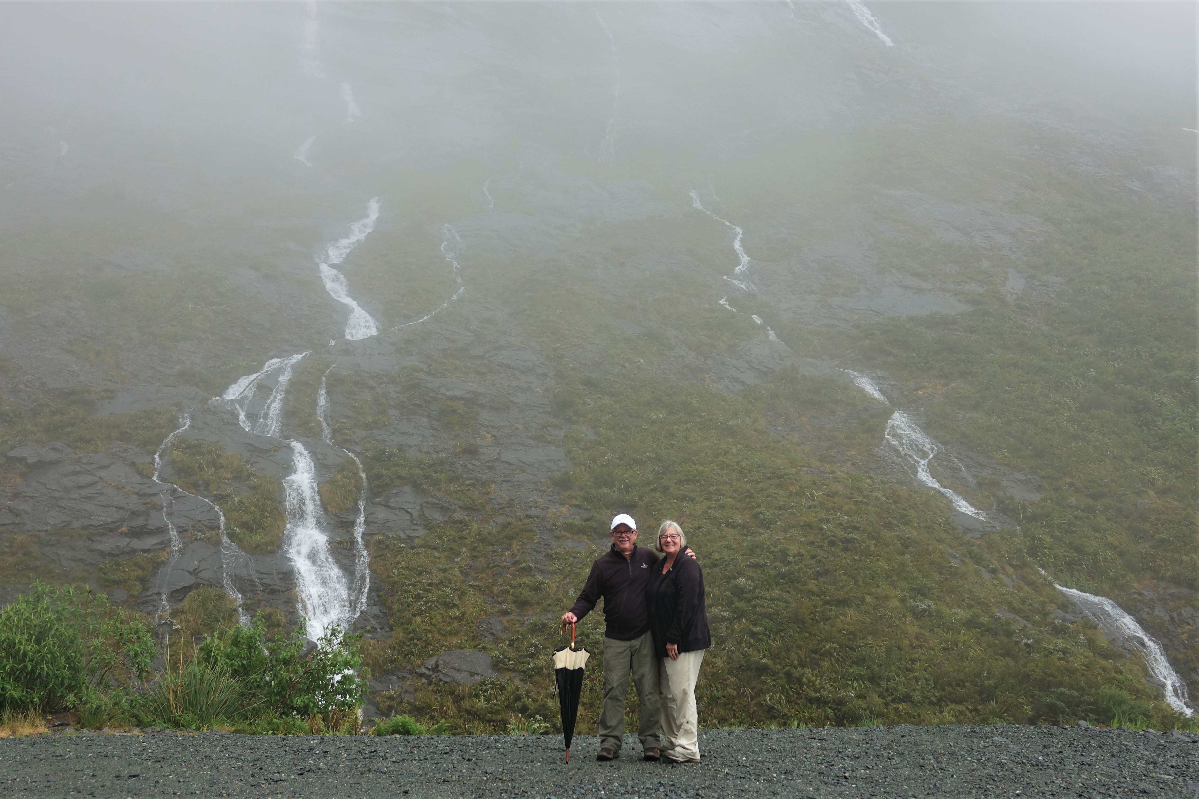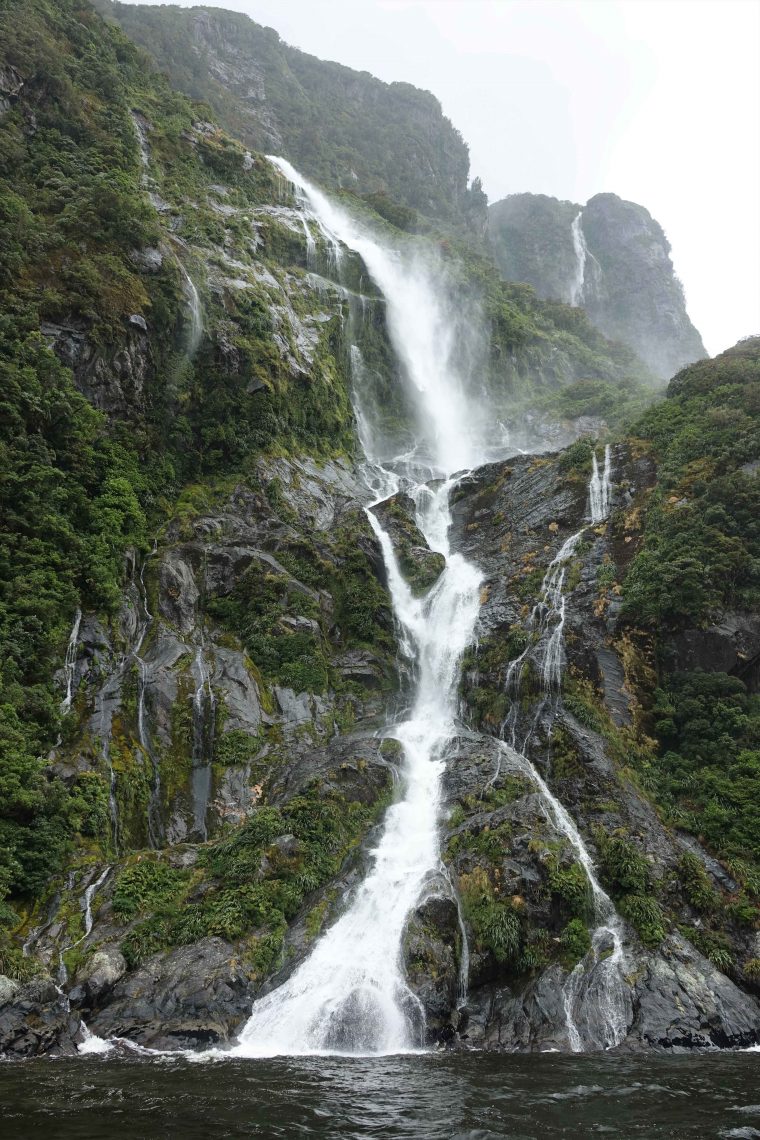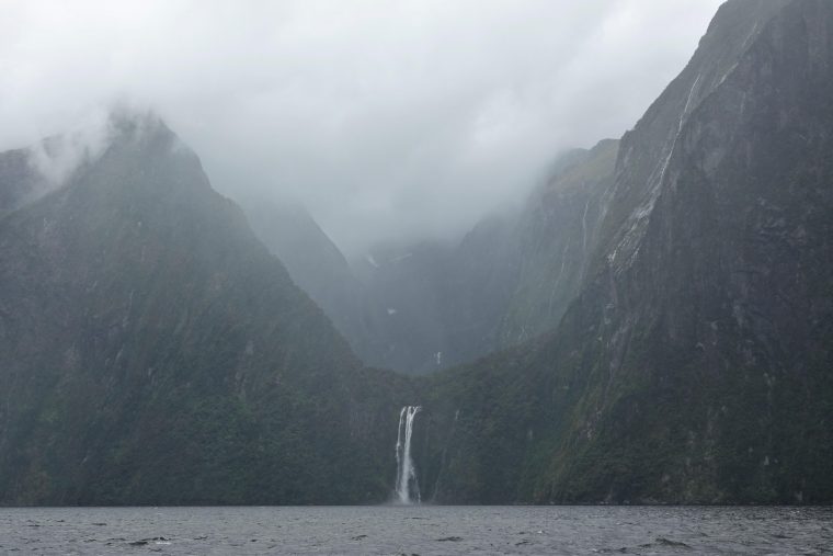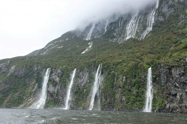 The boat is smaller than we expected, so a much more intimate experience. We spend two hours cruising through the Milford Sound, created by glaciers many moons ago. As it has been raining all day, the bonus is the hundreds of waterfalls we are seeing. The area gets about 10 meters (32 feet) of rain a year.