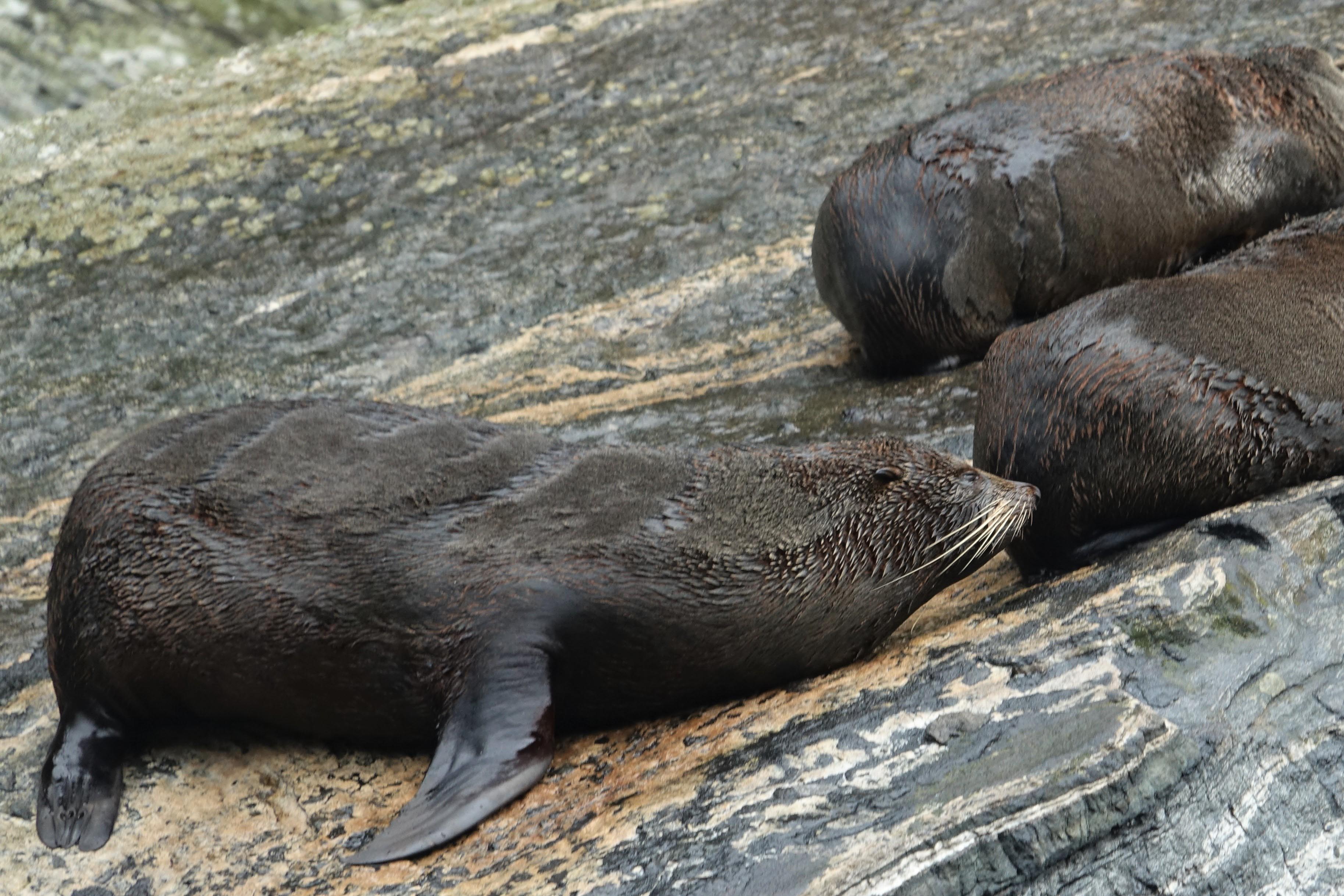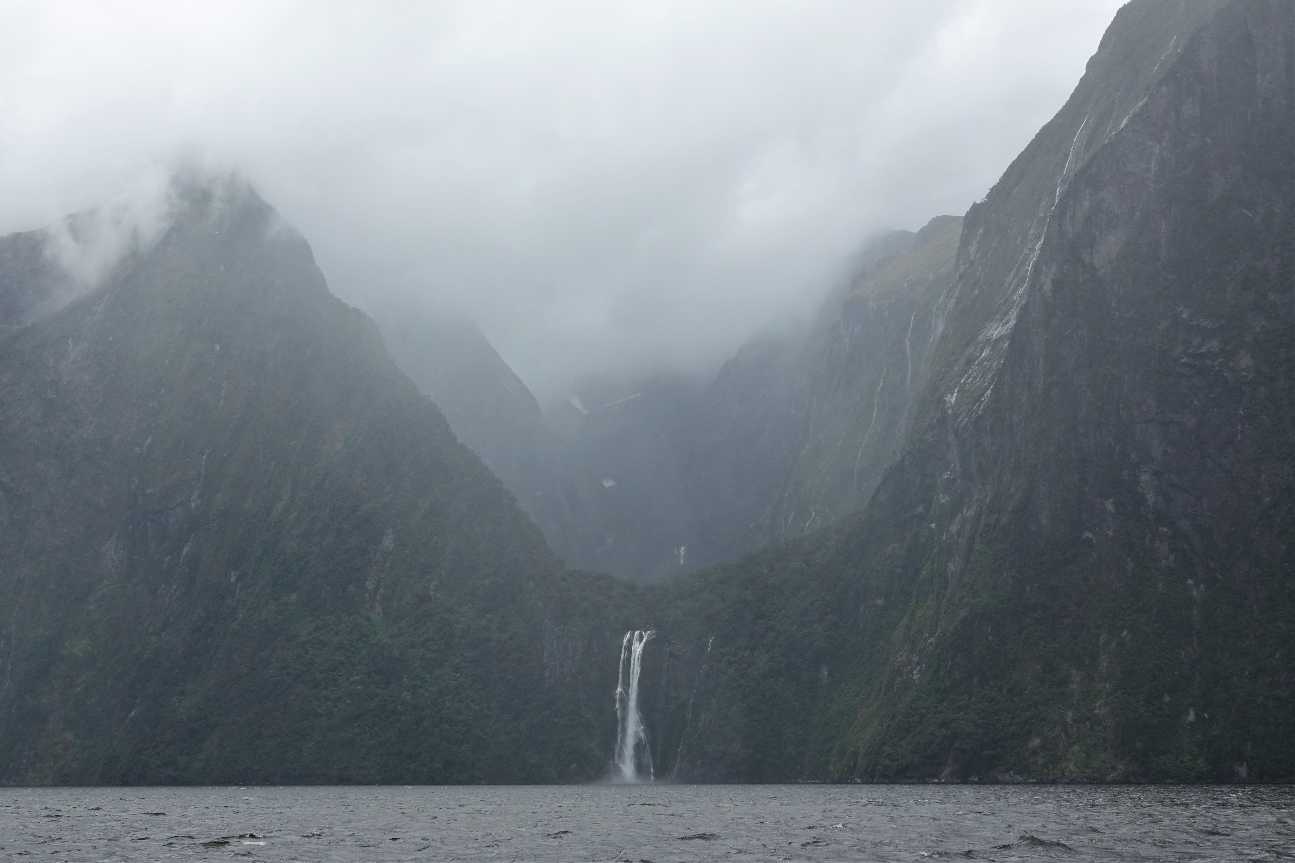The cruise itself is amazing, even though the rains are pretty fierce. Deep valleys pierce the Sound with hundreds of waterfalls. Amazing. Not too much wildlife about but we did see a dozen or so teenage male fur seals.