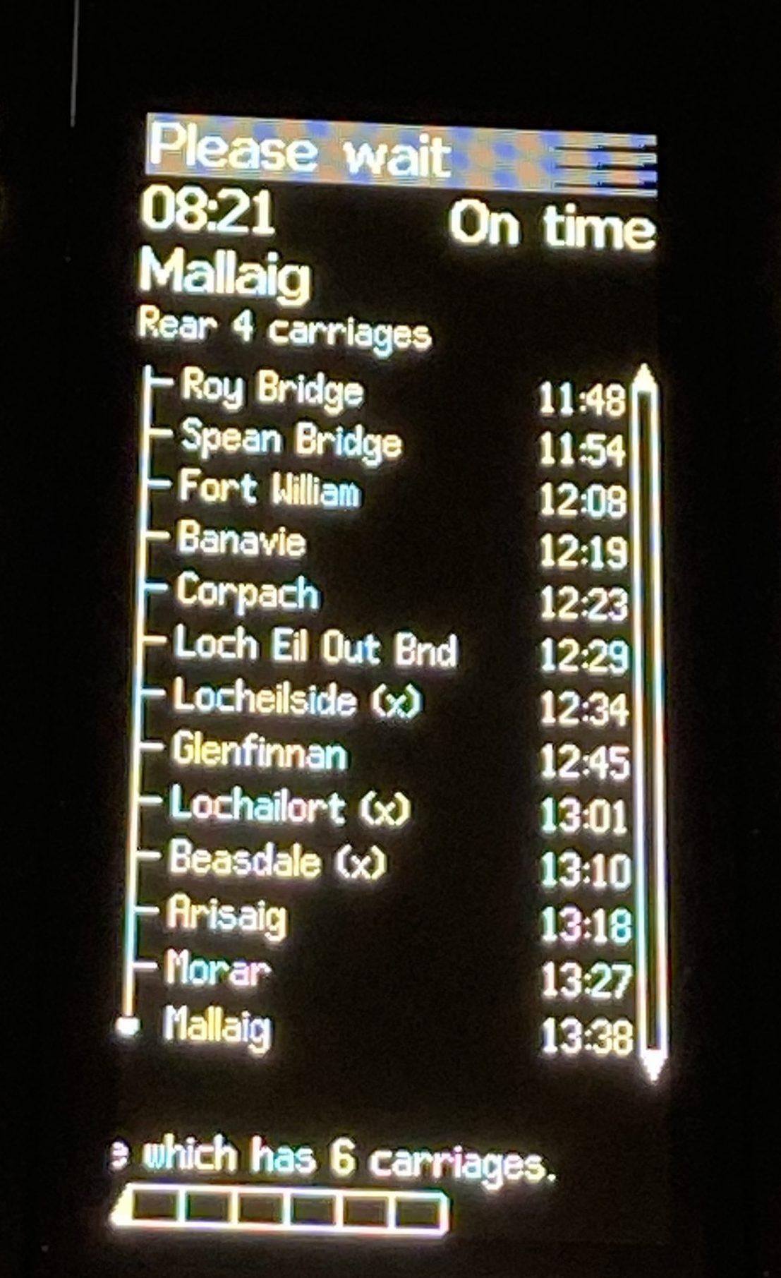We taxied to Glasgow Center and Queen Street Station, one of the major transport hubs for the city. The ‘West Highland Train’ is one of the most scenic in Europe, travelling from Queen Street Station in Glasgow along Scotland’s west coast. It’s a part of Scotland that can only be seen by train. The route passes through Helensburgh, past Loch Lomond, by the Glenfinnan Viaduct of Harry Potter fame, views of Ben Lui and Ben Dorain, on to Fort William and finishing in Mallaig. Unfortunately, it’s not an ideal day for viewing as there is heavy cloud cover and occasional showers. Sadly, not enough pictures. Still a cool ride that winds up and through the highlands.