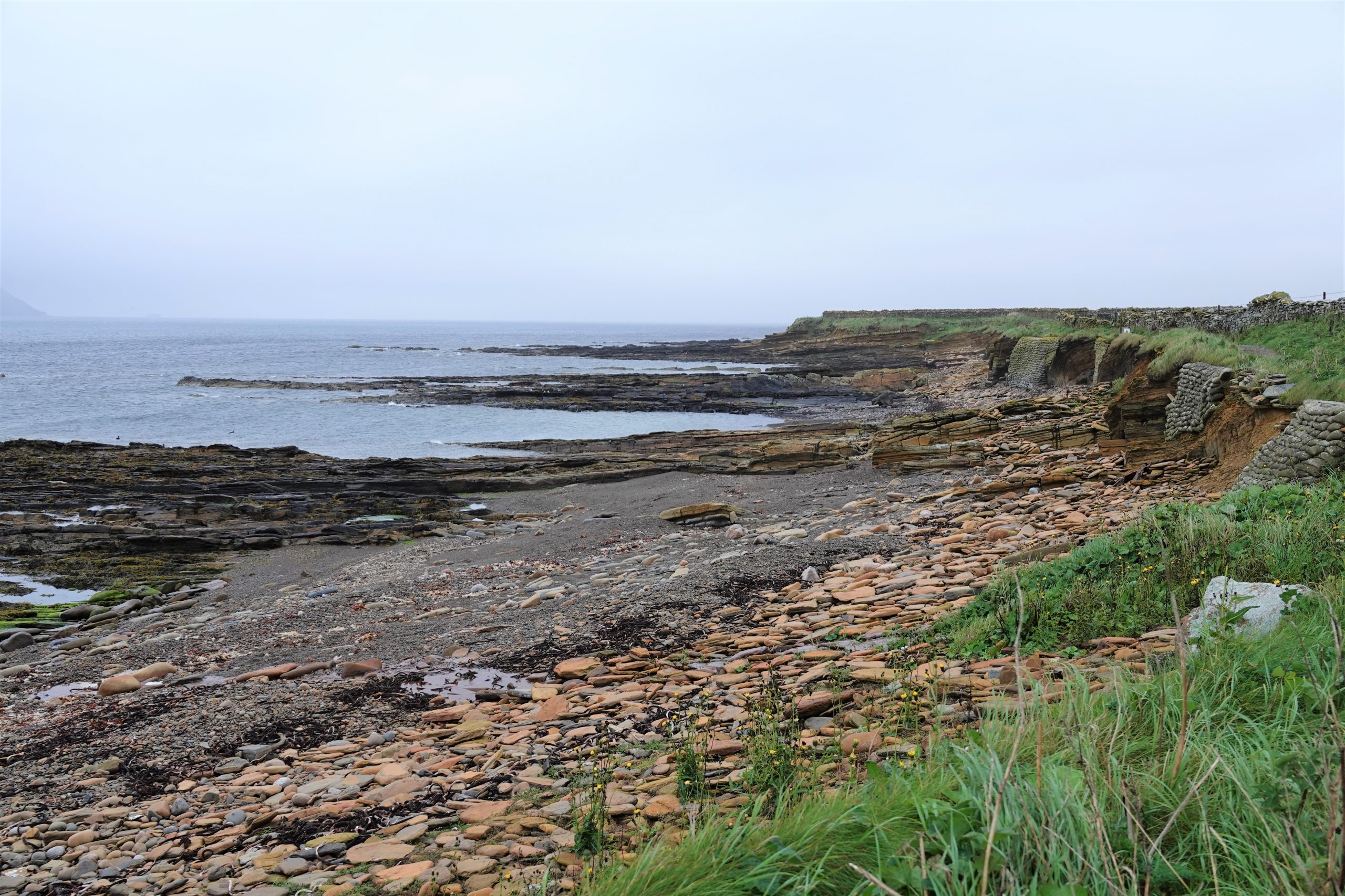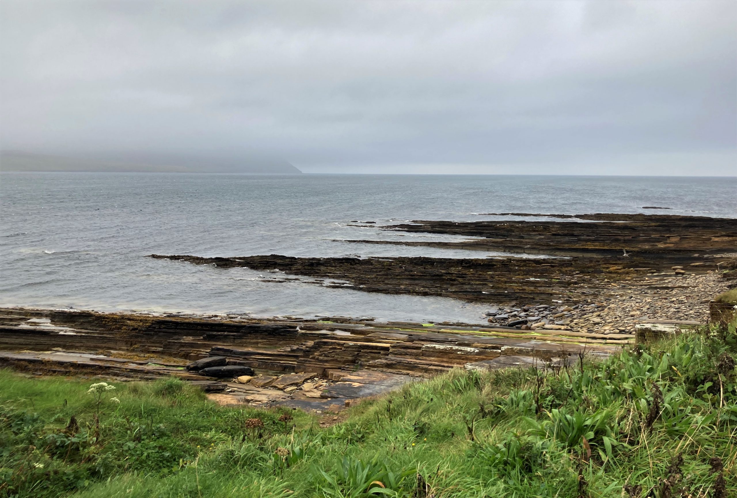 I’ve been thinking about Orkney’s ‘West Coast Walk’ for a long time. It runs from Stromness where we are staying along the coast up to Yesnaby. Slabbed coastal cliffs and a number of sea stacks are along the route. The plan was an early rise and solo hike back in time for lunch with the rest of the crew. Alas, monsoons & high winds early. I waited for a break then layered up with rain gear and headed out. Rainy, massive downpours & windy, but a great walk. Took a while to dry out the gear! – Dick
