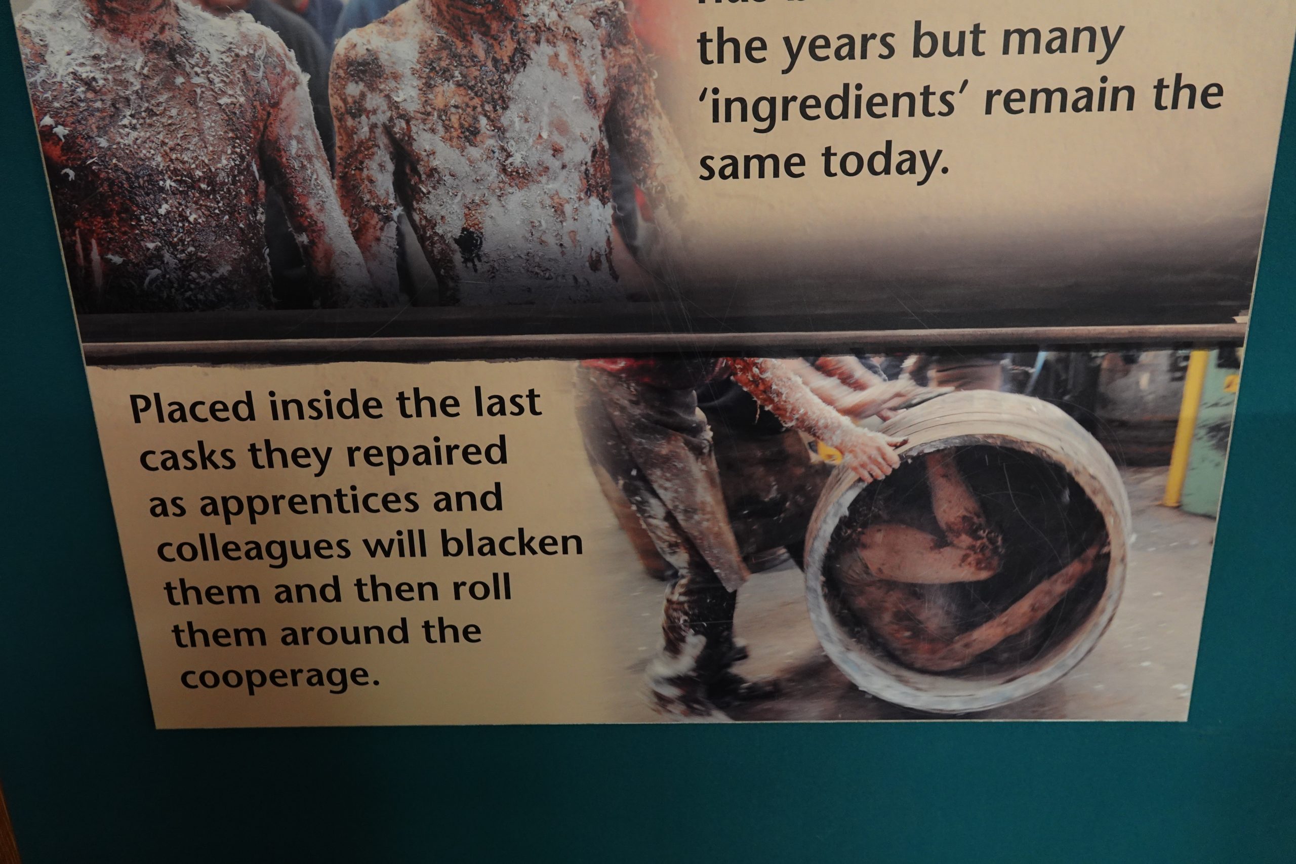 It takes four years to apprentice as a cooper. At graduation they are tarred and rolled around the cooperage in the last cask they worked on. Some graduation ceremony! They are paid by the piece, so the more casks they make the more they get paid. If a cask does not pass the quality check – they fix it for free. Apparently, they get paid quite well.