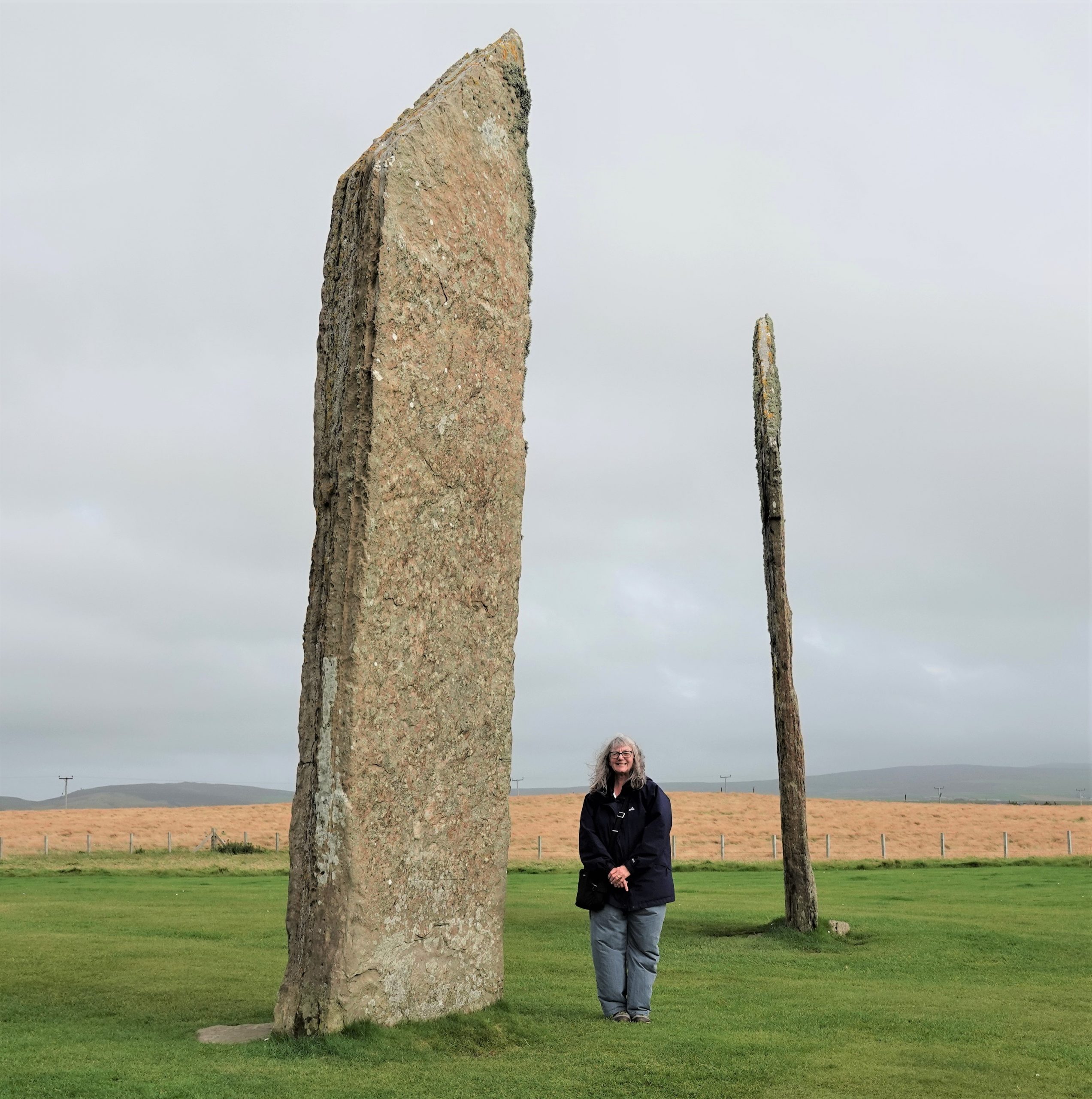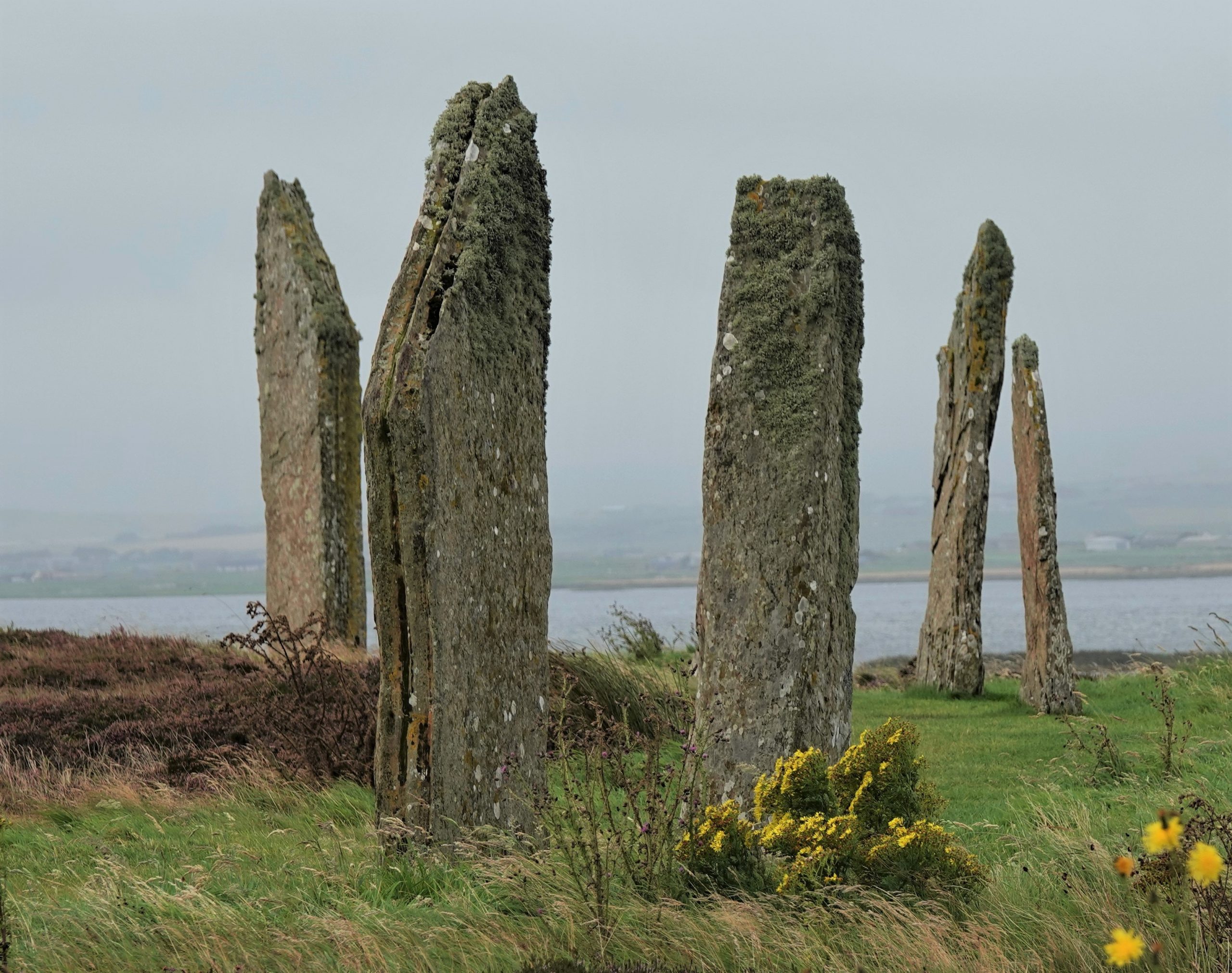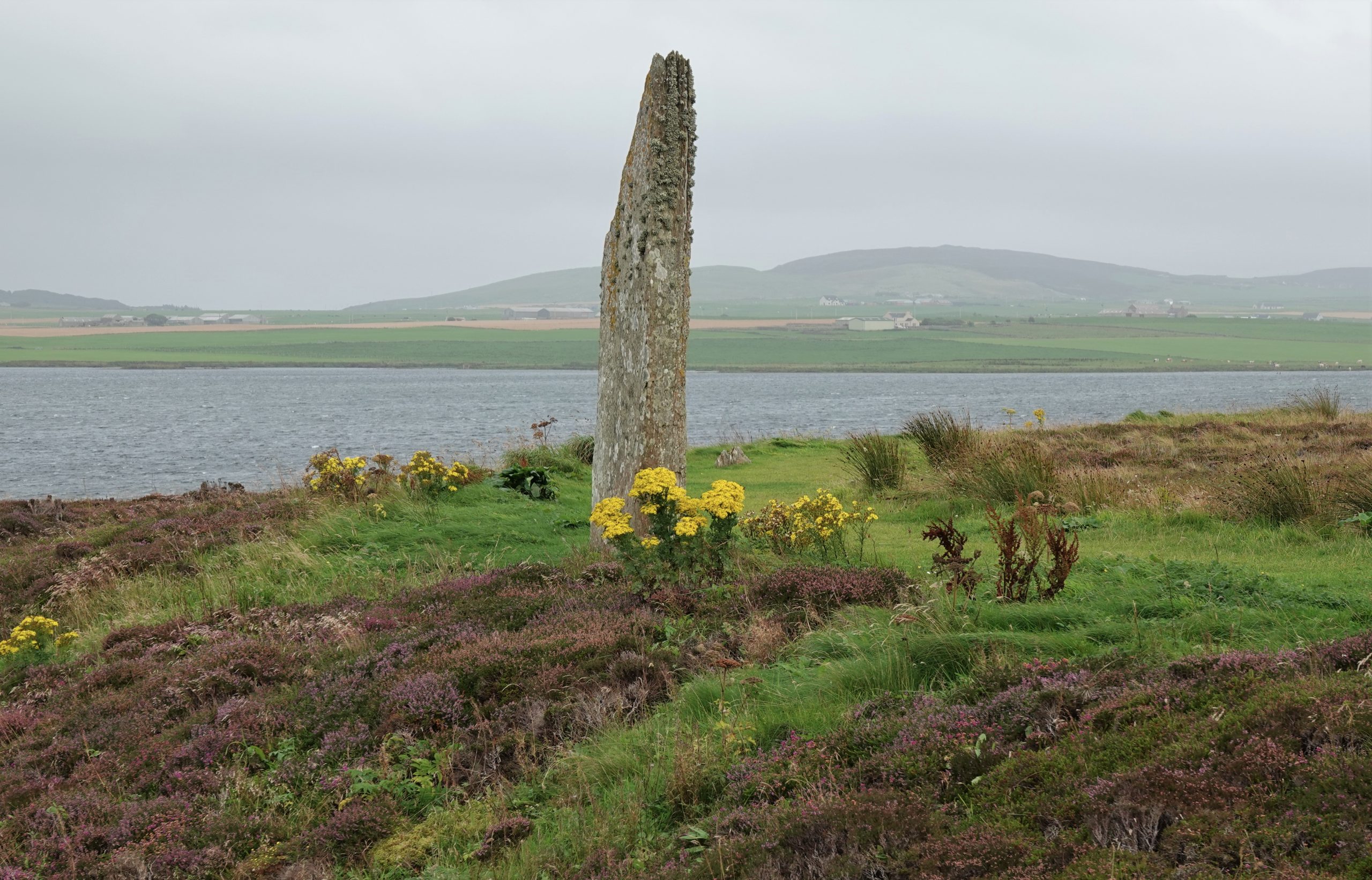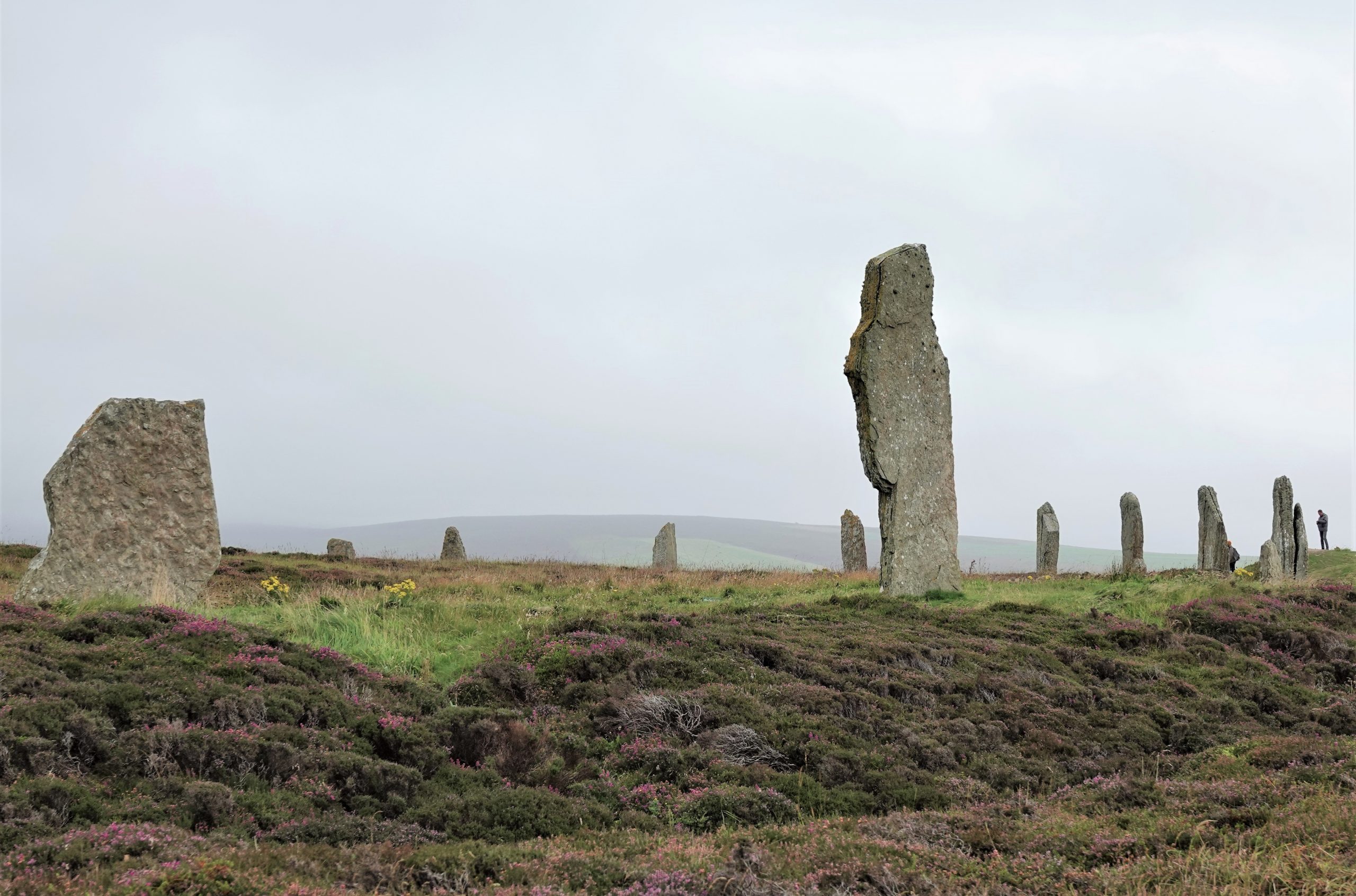 The final Stenness monument is the iconic ‘Ring of Brognar’.  It is estimated to have been erected between 2500 & 2000 BC, making it the last of the great Neolithic monuments built on the Ness.  Originally some 60 stones comprised the stone ring.  Only 27 remain today.  Interestingly, some years ago we visited the Neolithic Avebury complex near Stonehenge almost 700 miles from the Orkneys. The Brodgar ring is exactly the same size as Avebury’s two inner rings! Very curious.