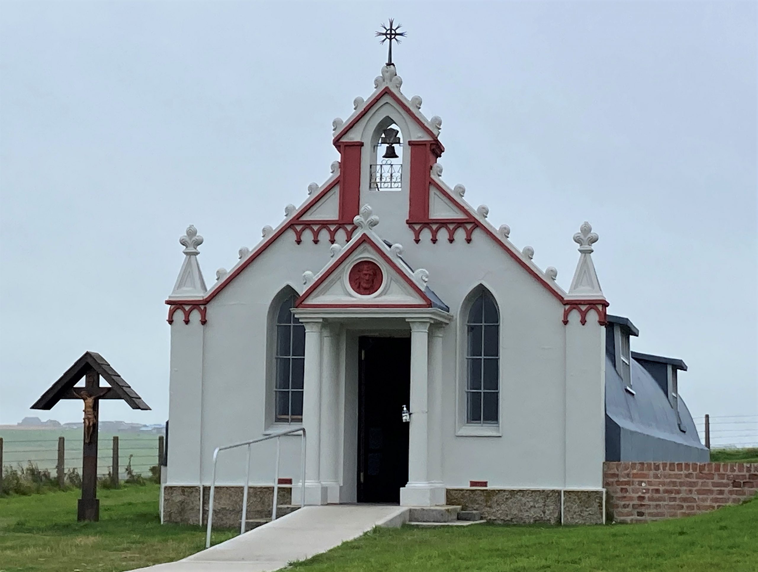 Much of the work on the barriers was done by Italian prisoners of war.  While on Orkney, the prisoners convinced the Brits they needed a place of worship and transformed a basic Nissen hut into the remarkable Italian Chapel.  The chapel is an incredible work of art.  The interior is noted for it’s ‘trompe l’oeil’, or ‘trick of the eye’ technique which made the painted walls appear to the mortared brick.  Fooled us all.
