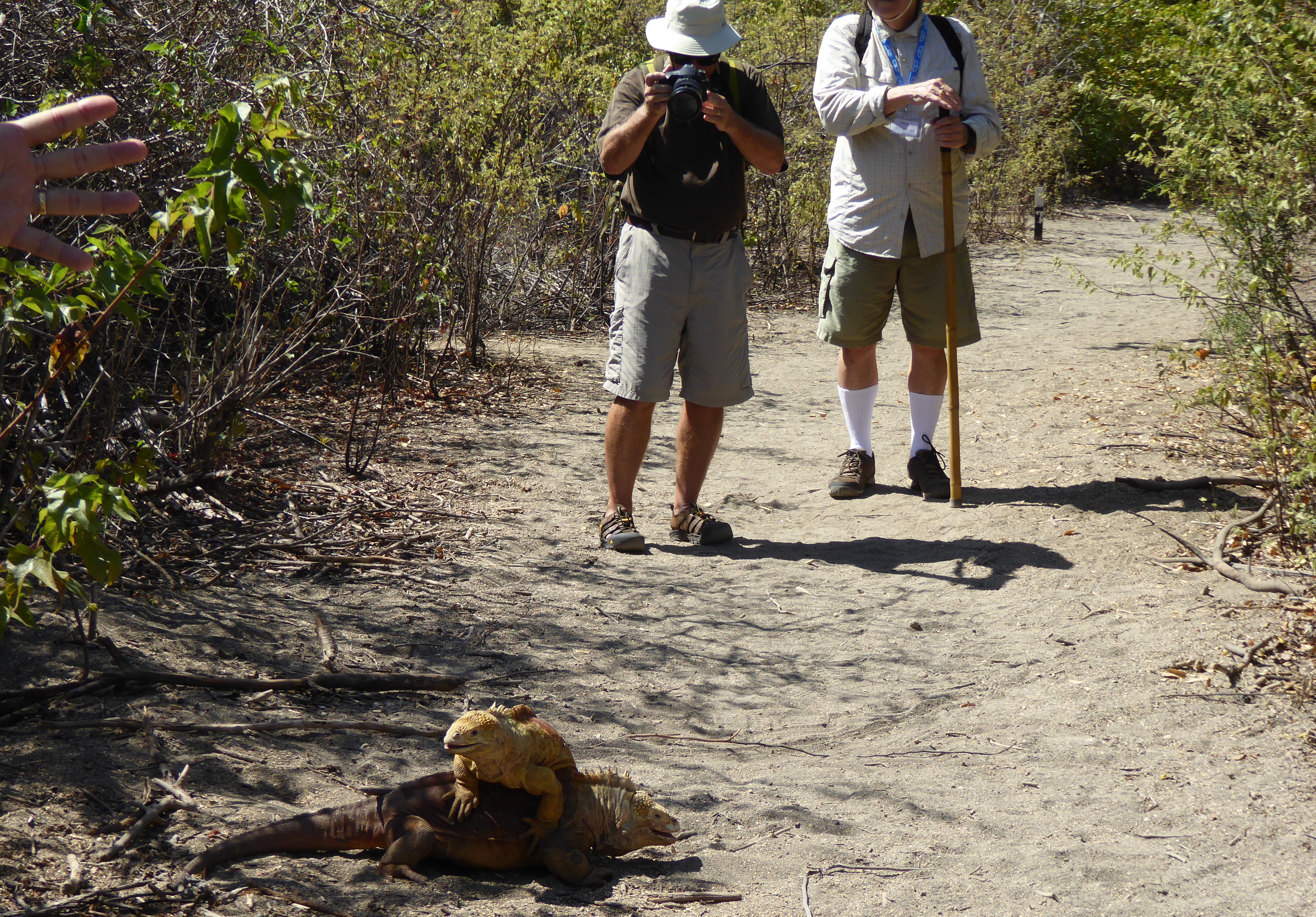 Overnight we transited to Urbina Bay (on Isabela Island).  After breakfast, we have another ‘wet’ landing to take a hike.  Yesterday was all about marine iguanas, today is about land iguanas.  They are quite prolific on this part of the island.  We also see a giant domed tortoise, our first of the trip.  After several hours we go head back to the boat for lunch.  Dale has arranged for us to tour the bridge and talk to the captain – very cool.